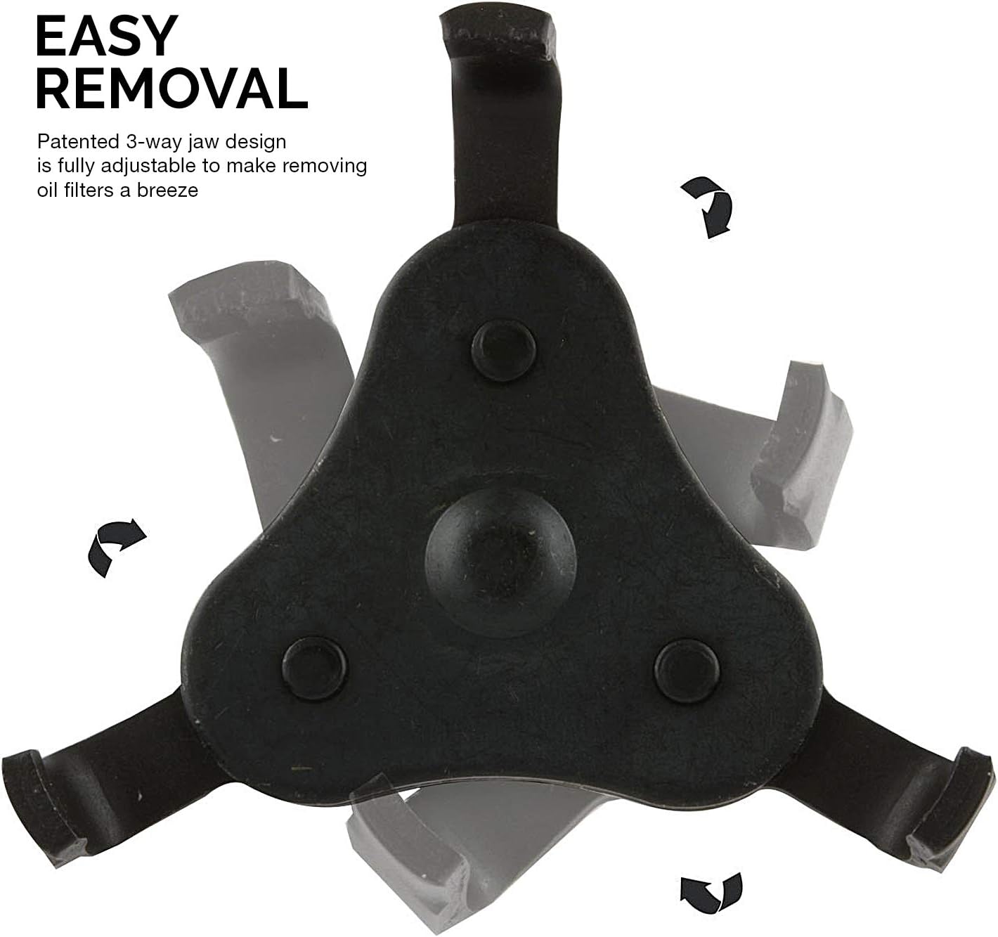 - [EASY-TO-USE]: Auto-adjustable oil filter wrench with patented 3-jaw design makes quick work of your oil filter cap to install/remove oil filters.