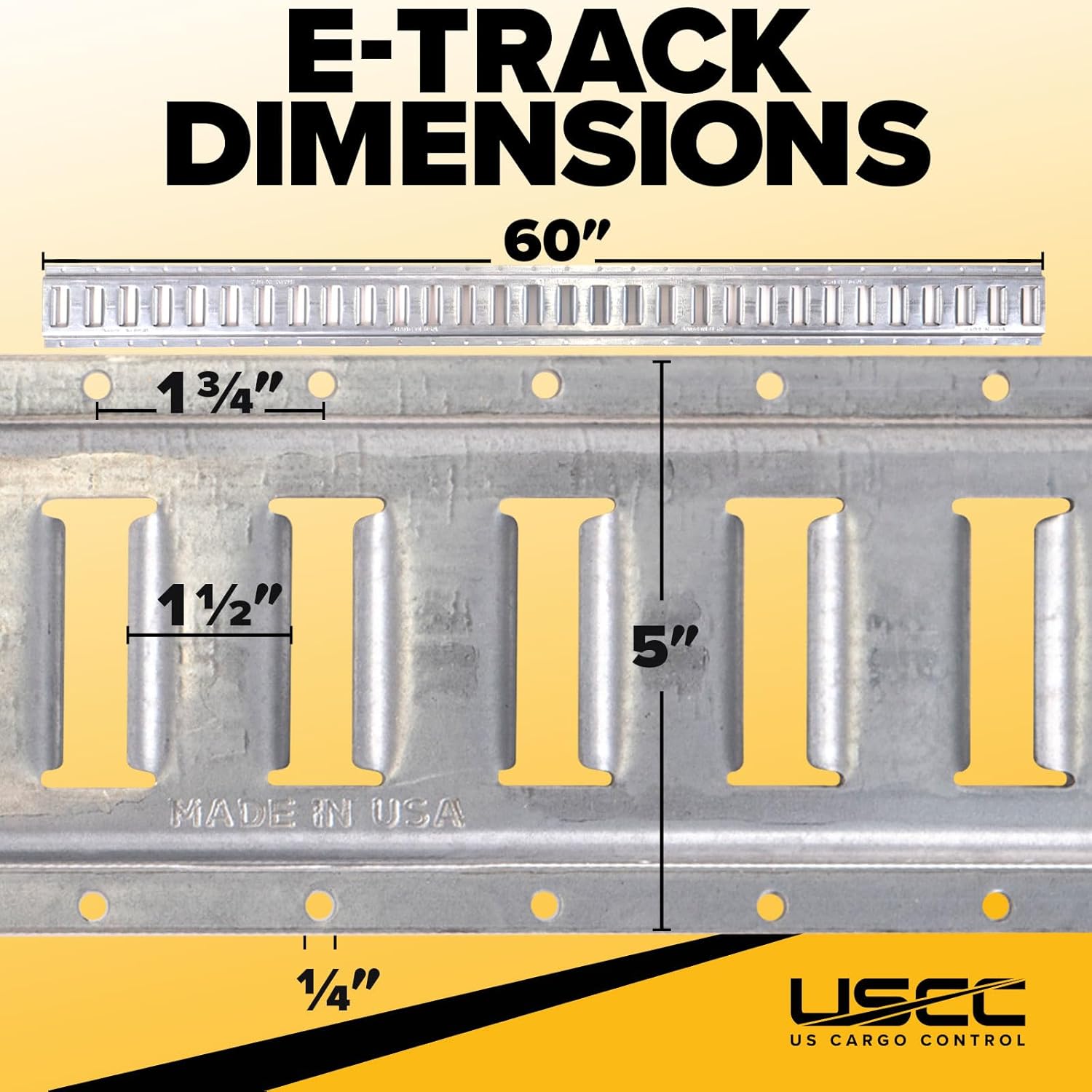 US Cargo Control E Track, Made in USA, 12 Gauge Steel 5 FT Galvanized E Track Rail, Horizontal ETrack Rails for Trailers, Garages, Cargo Vans, 6,000 Pounds Break Strength Per E-Track Slot