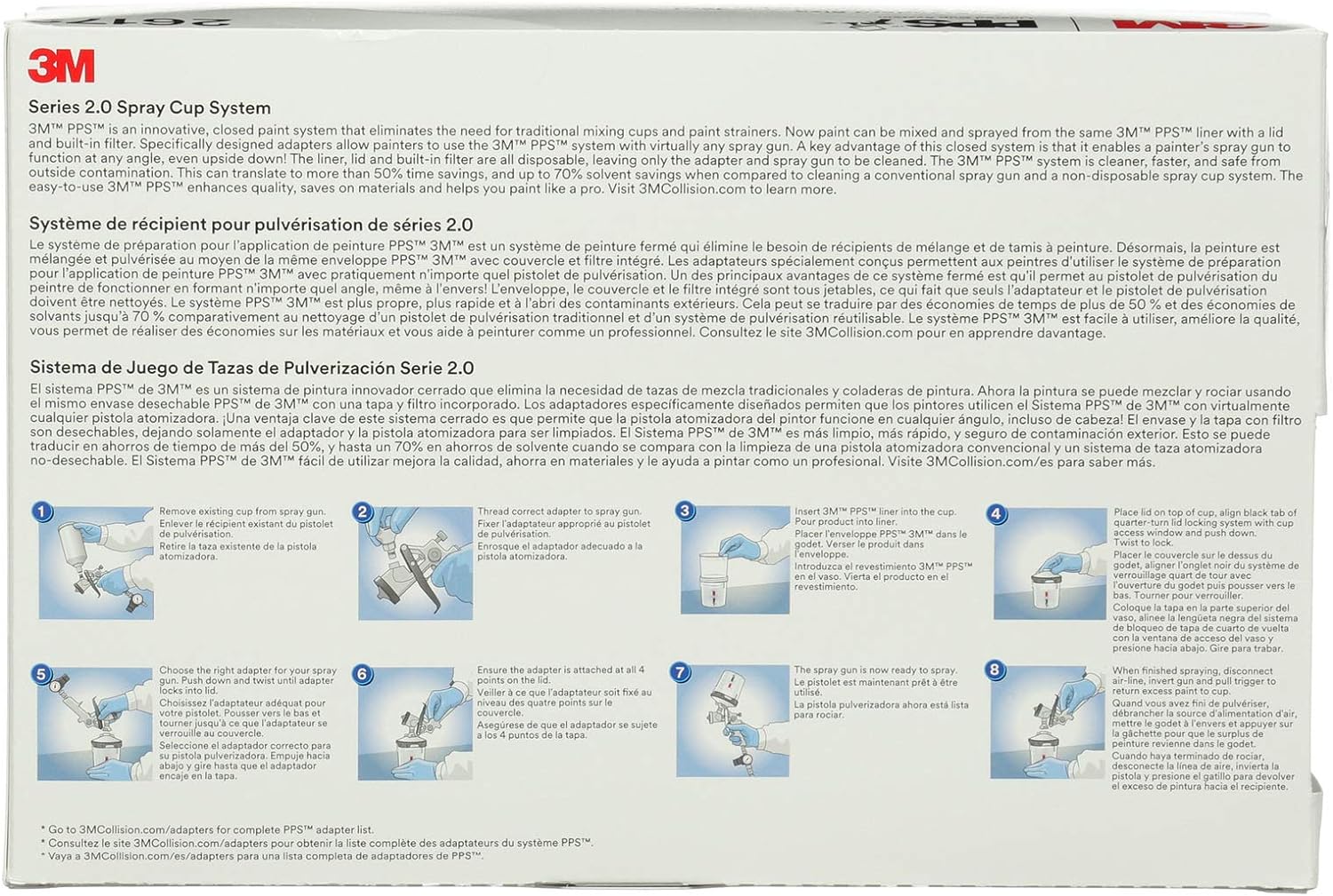 3M PPS 2.0 Paint Spray Gun System Starter Kit with Cup, Lids and Liners,26172, 22 OZ, 200-micron Filter, Use for Cars, Home & more,1 Paint Cup,6 Disposable Lids and Liners,16 Sealing Plugs, Gray