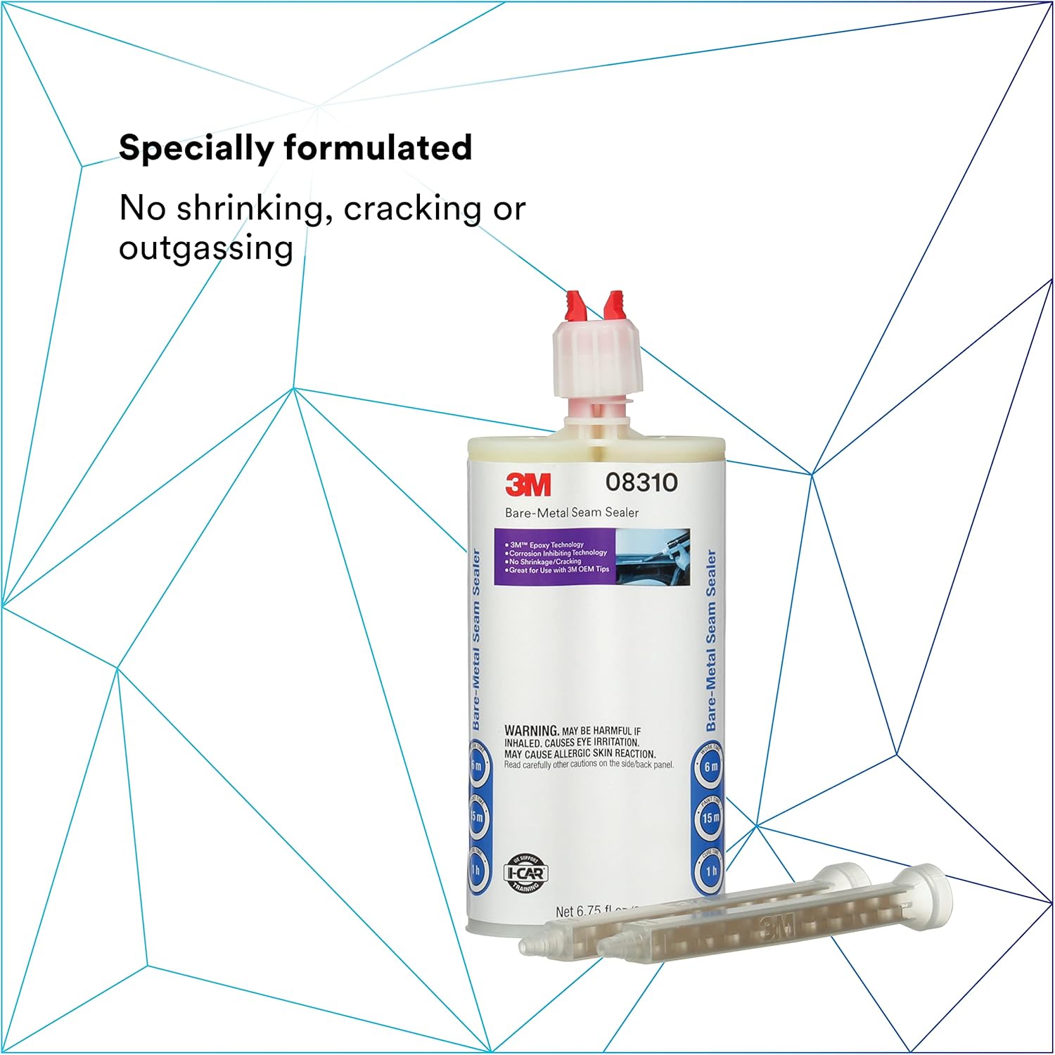 3M Bare - Metal Seam Sealer, 08310, Beige Color, Two-Part, Non-Sagging, Self-Mixing Epoxy, 200 ml/6.75 fl oz Cartridge