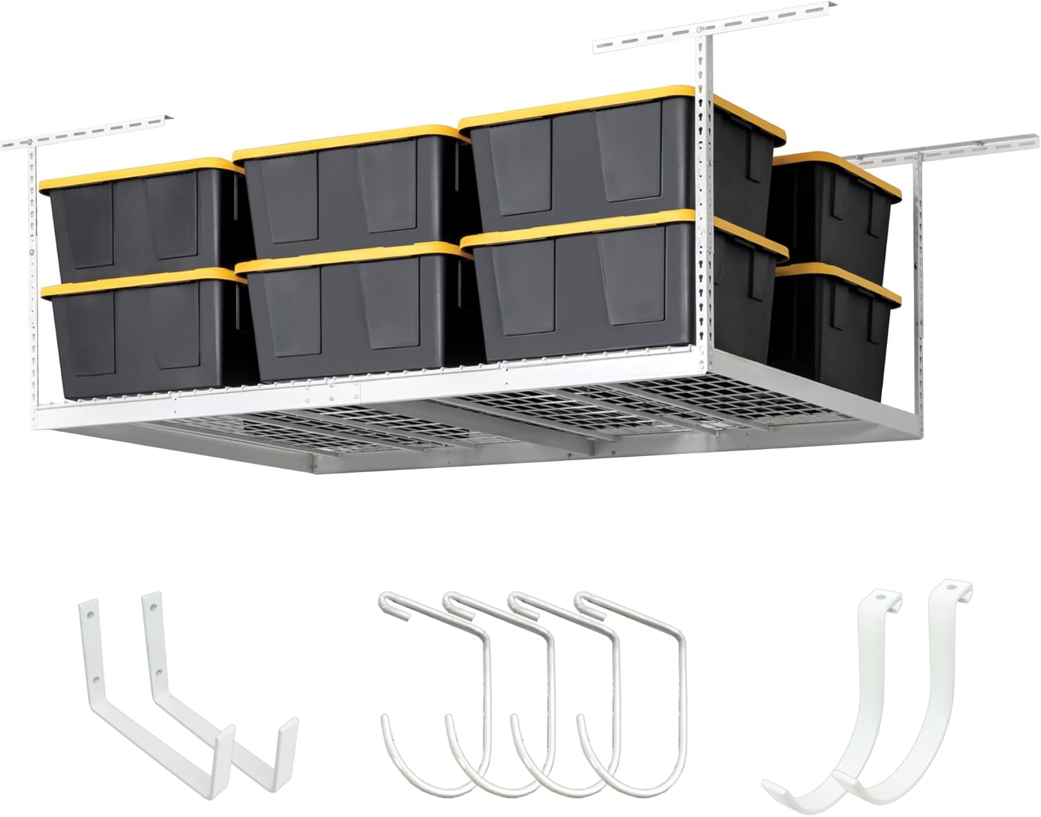 SafeRacks 4x8 Overhead Garage Storage Rack Heavy Duty - White (12"-21") - Holds 600 lb