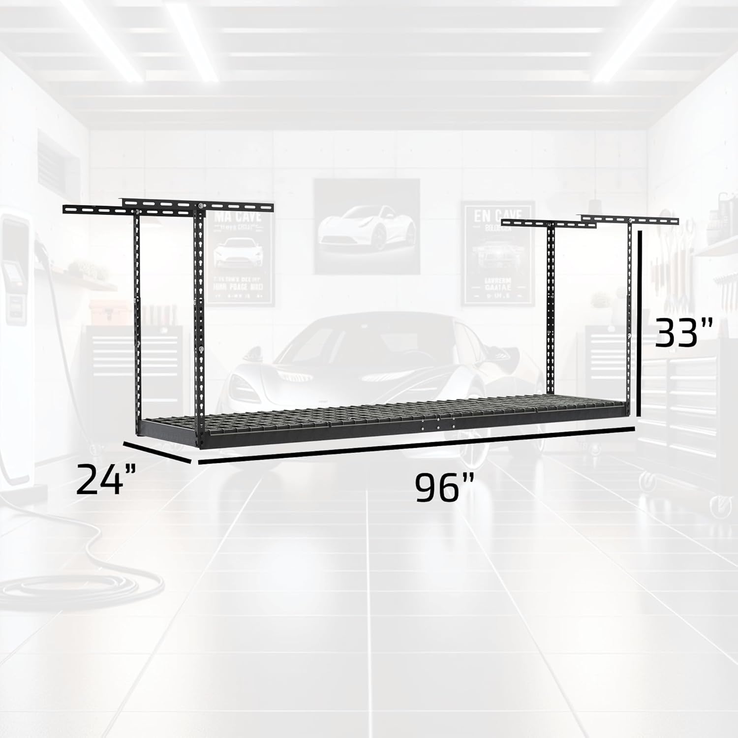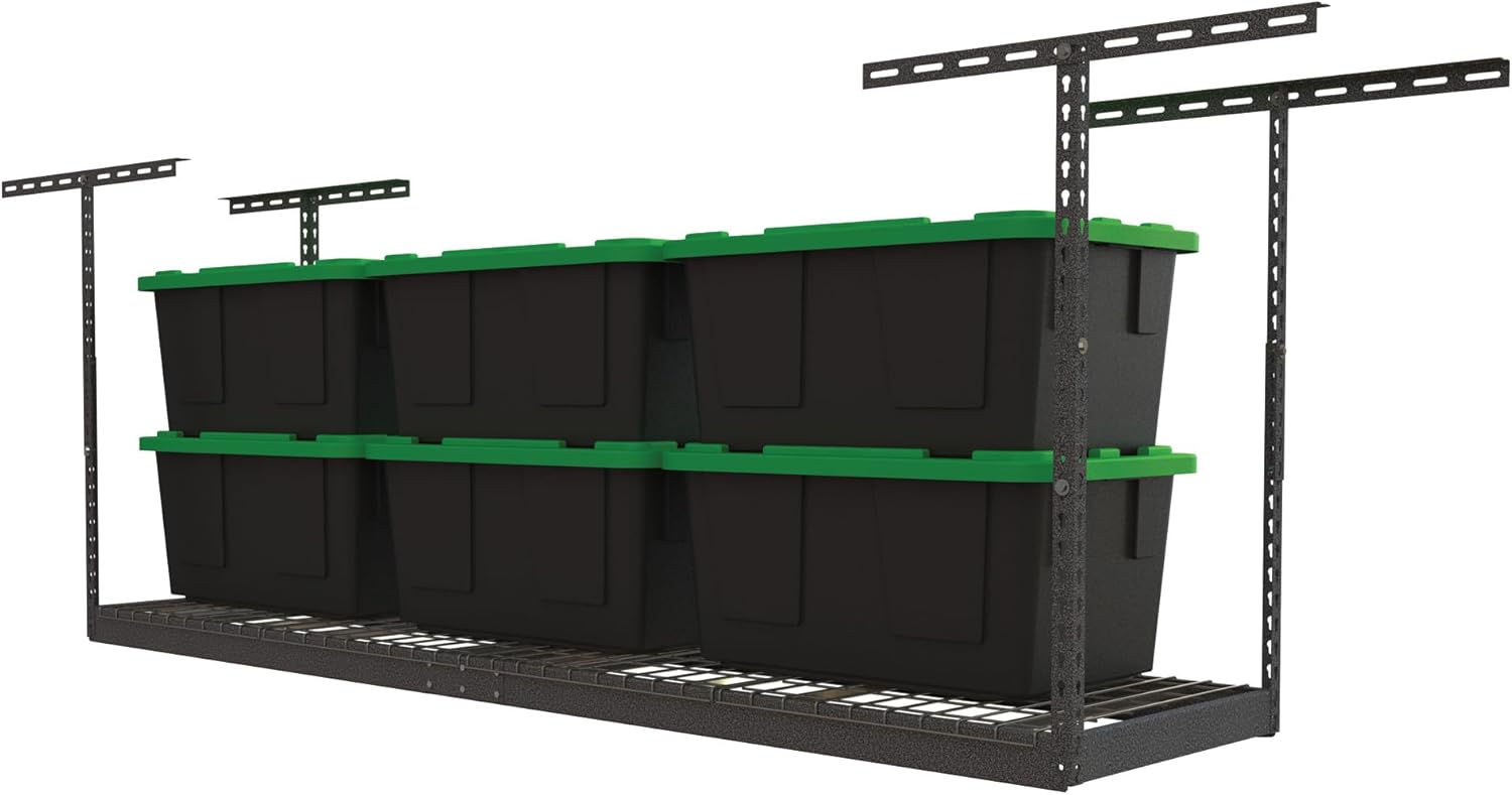 MonsterRax Overhead Garage Storage Rack 2x8, Ceiling Mounted Shelving, Adjustable Hanging Organizer, Heavy Duty Steel, 350 Pound Capacity, Color: Hammertone, Adjusts 18-33" from Ceiling