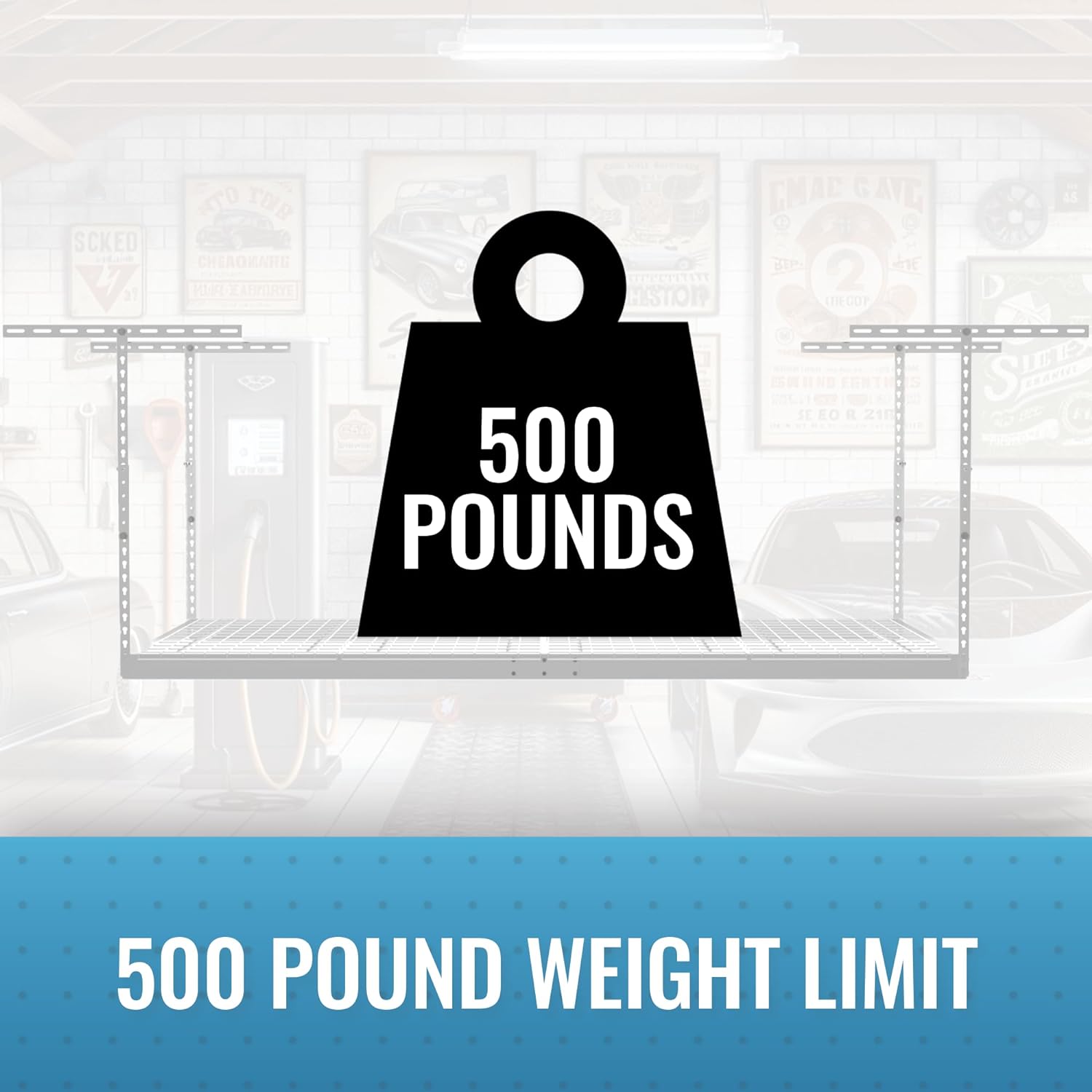- INDUSTRIAL STRENGTH RACKS: Our industrial strength garage ceiling storage rack is designed to hold up to 500 lbs and is perfect for storing bikes, construction tools, storage bins, holiday decorations, and other items and accessories. The powder coat finish provides a durable, scratch, water, and rust-resistant surface; while case-hardened hardware and our patented ceiling brackets provide additional strength and safety for this hanging shelf.