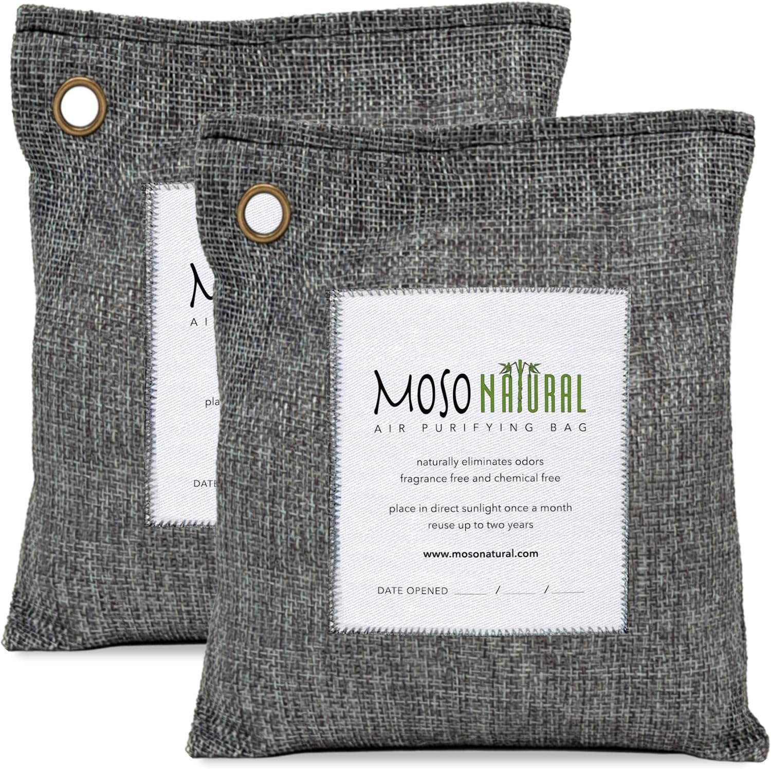 Moso Natural Air Purifying Bag 500g (2 Pack) Premium Bamboo Charcoal Odor Absorber for Home, Bedroom, Kitchen, Basement | Unscented Pet Odor Eliminator | Large Charcoal Deodorizer Bag Covers 250sqft