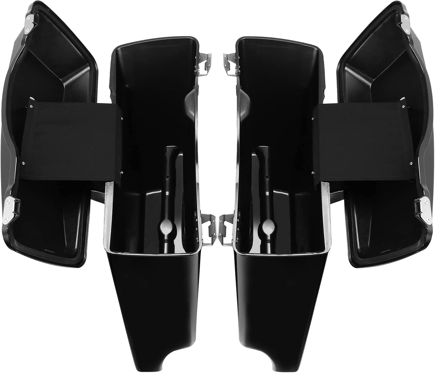 - FEATURE - Saddlebags are stretched 5" longer than stock to cover the muffler front to back and give that stretched look, provide high capacity to meet your storage demand while riding, such as clothing, drinks, tools or other daily necessities