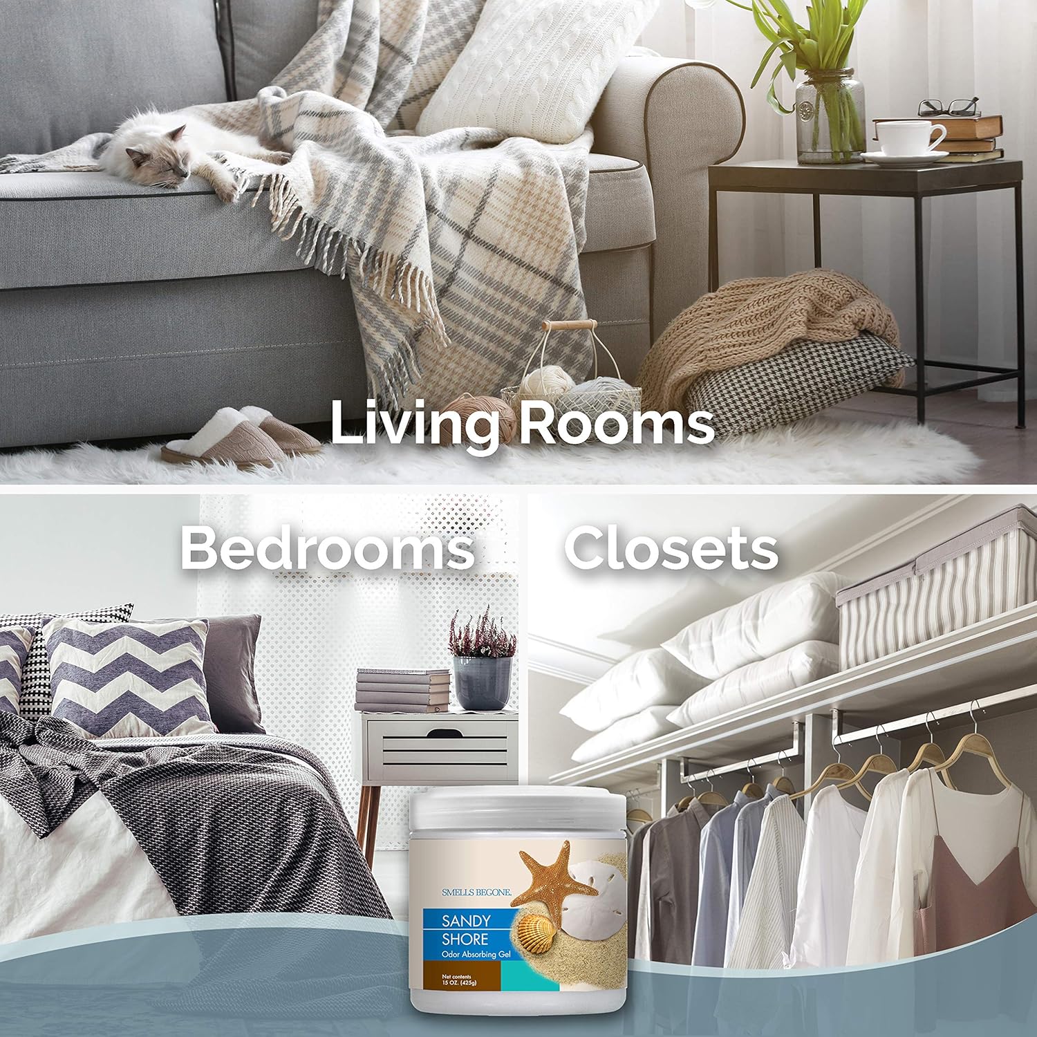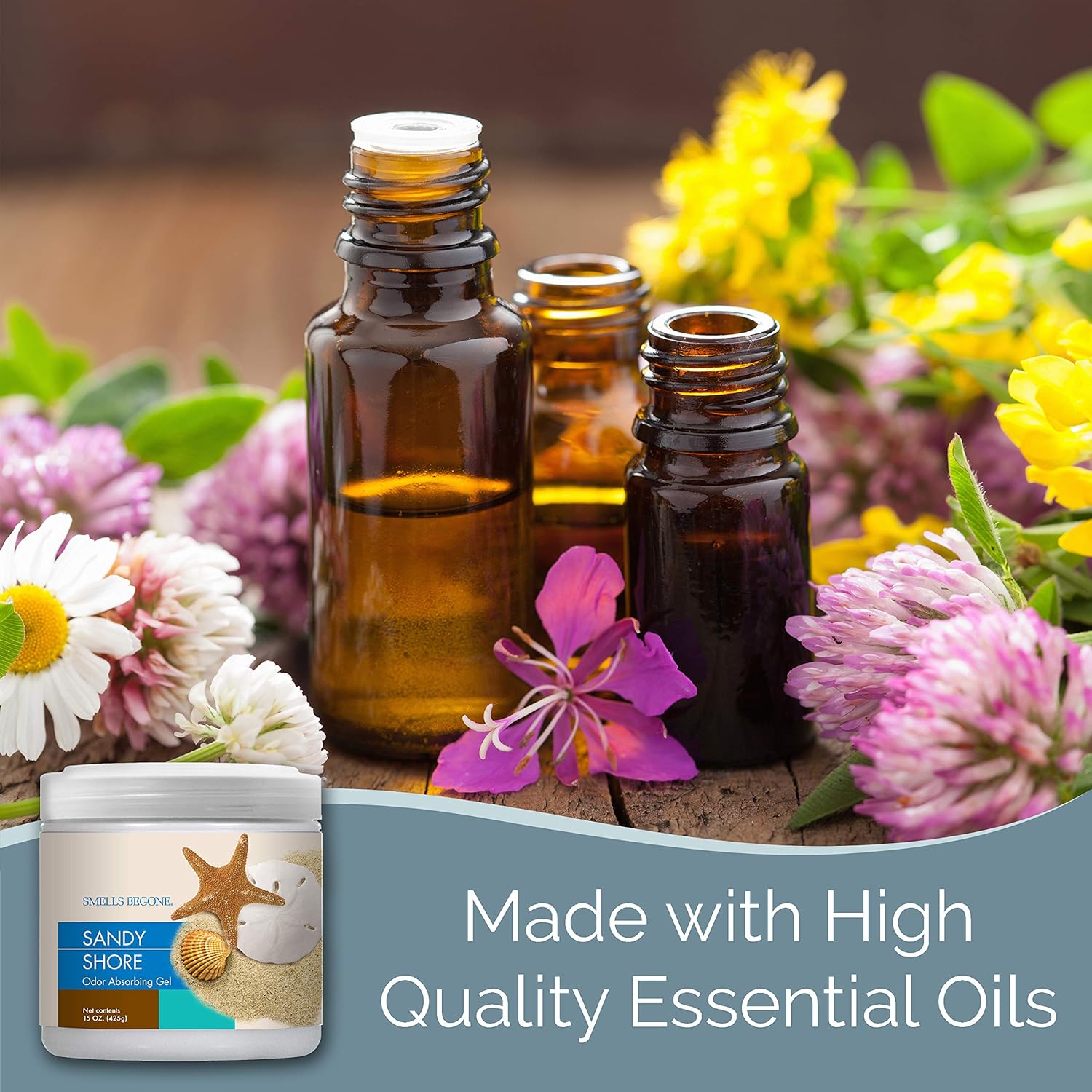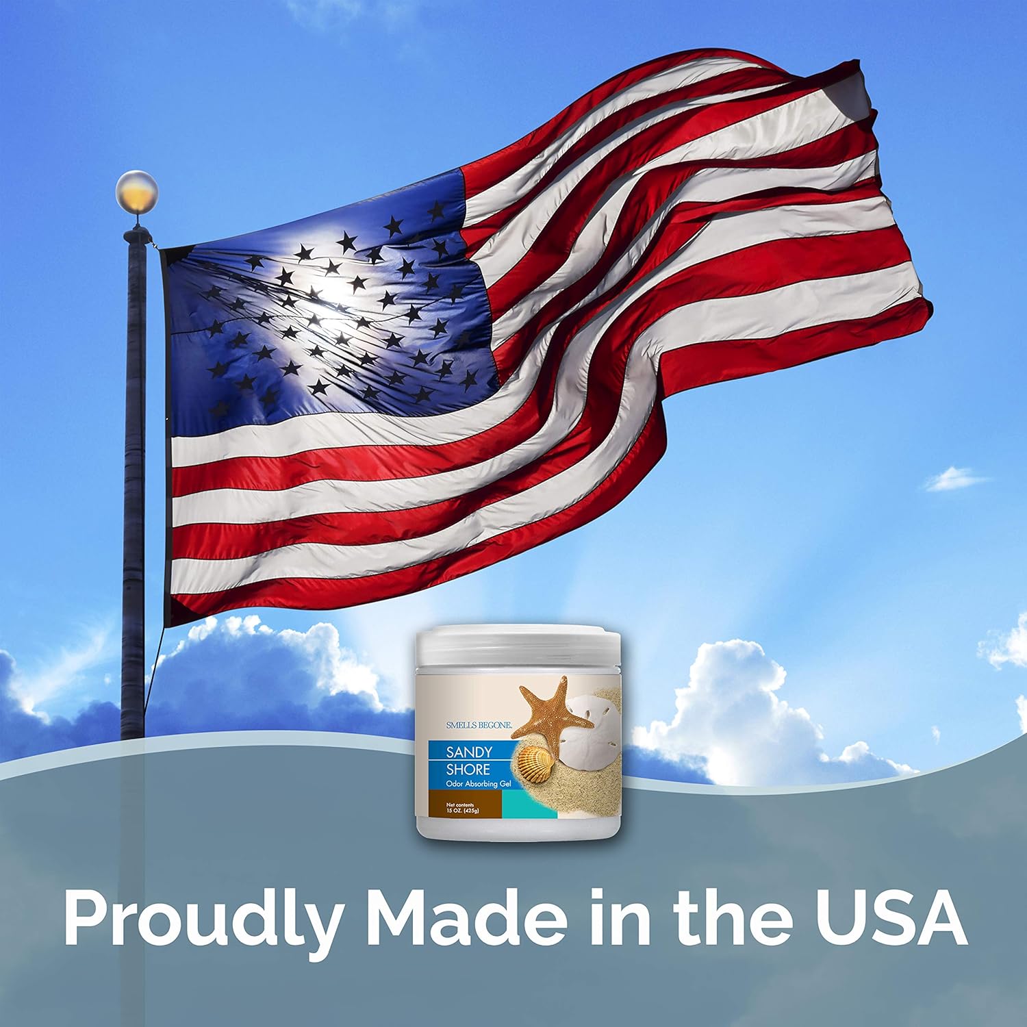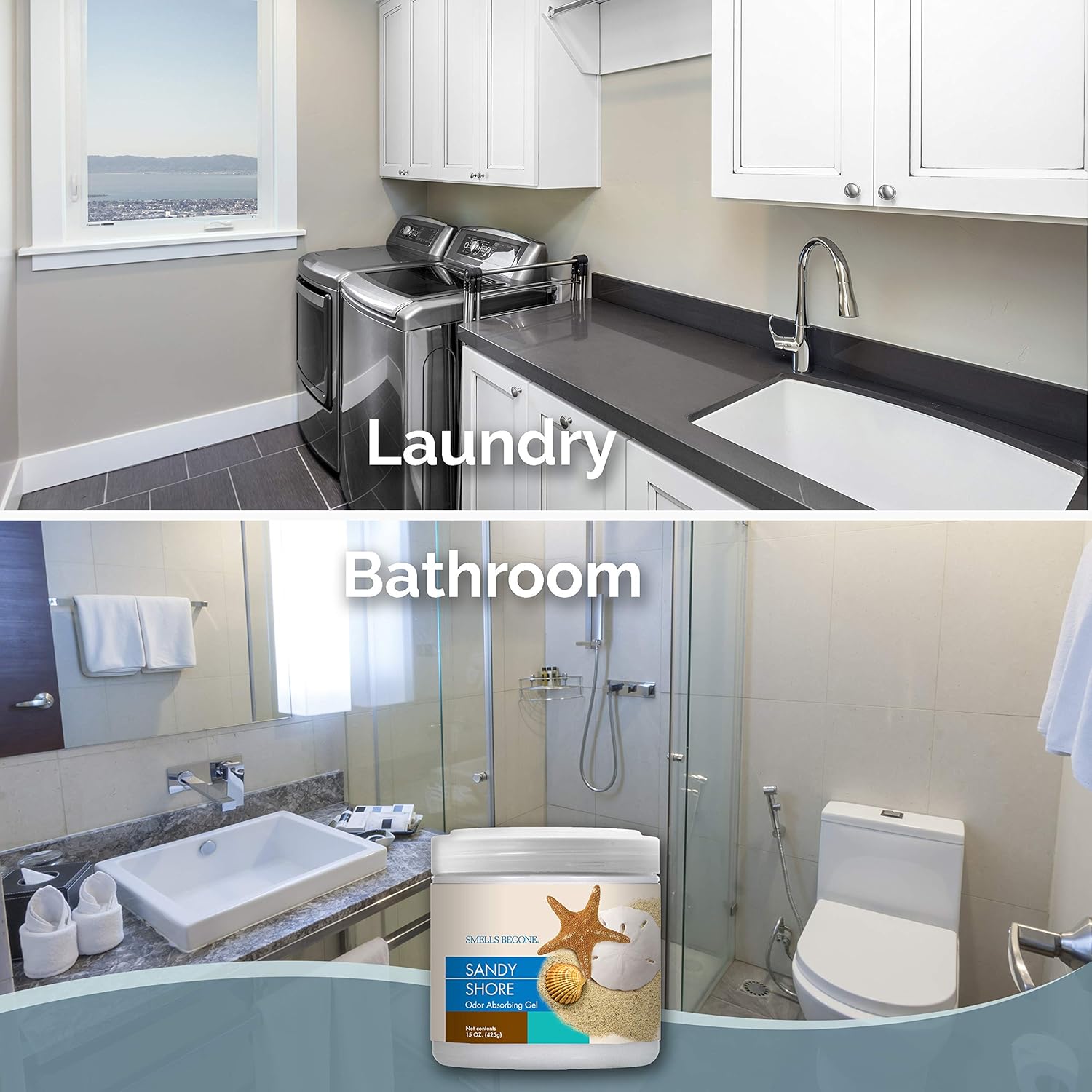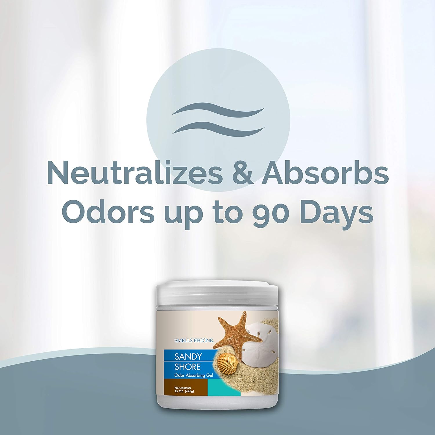 SMELLS BEGONE Air Freshener Odor Absorber Gel - 15 oz, Pack of 2 - Absorbs and Eliminates Odor in Pet Areas, Bathrooms, Cars, & Boats - Made with Essential Oils - Sandy Shore Scent