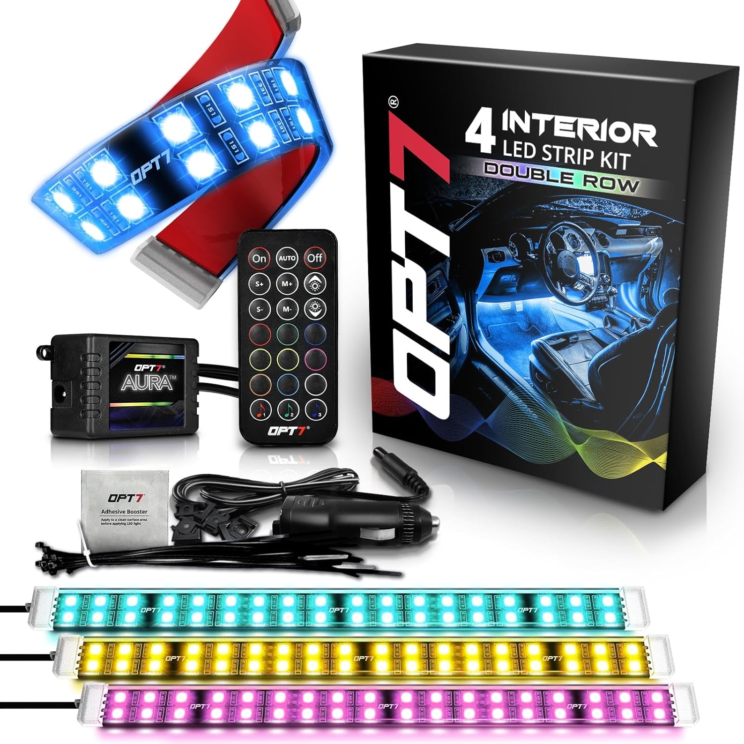 - [Double Glow] Stand out at your next car meet with OPT7βs exclusive double-row LED strips. Engineered for ultra-brightness, the premium LED strips deliver everything from chill blue vibes for relaxed drives to captivating party light effects that steal the spotlight.