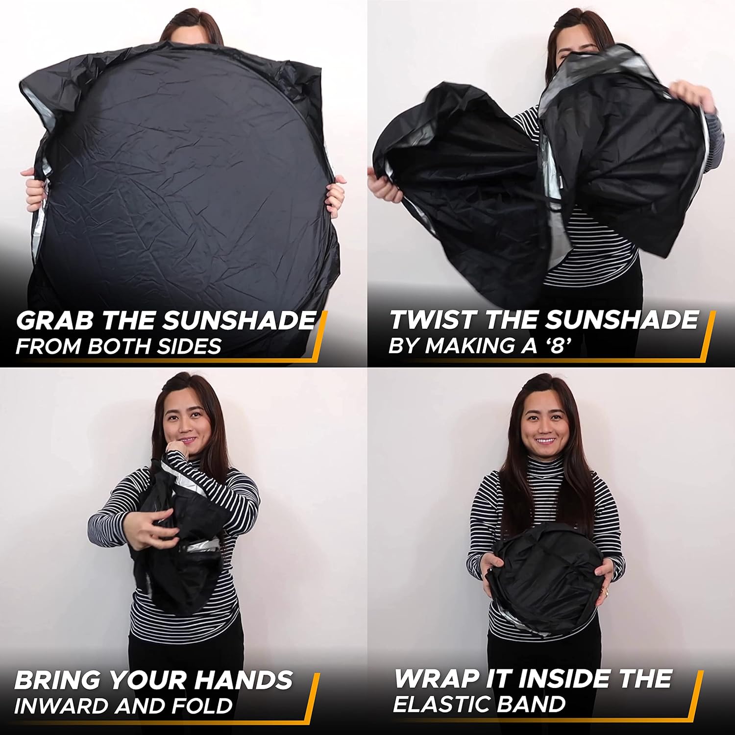 - Easy to Use and Fold: Our truck windshield sun shade black pops open instantly, installs in seconds, and folds back effortlessly for storage in the included pouch. This truck windshield blackout shade is designed for convenience, making sun protection simple and hassle-free.