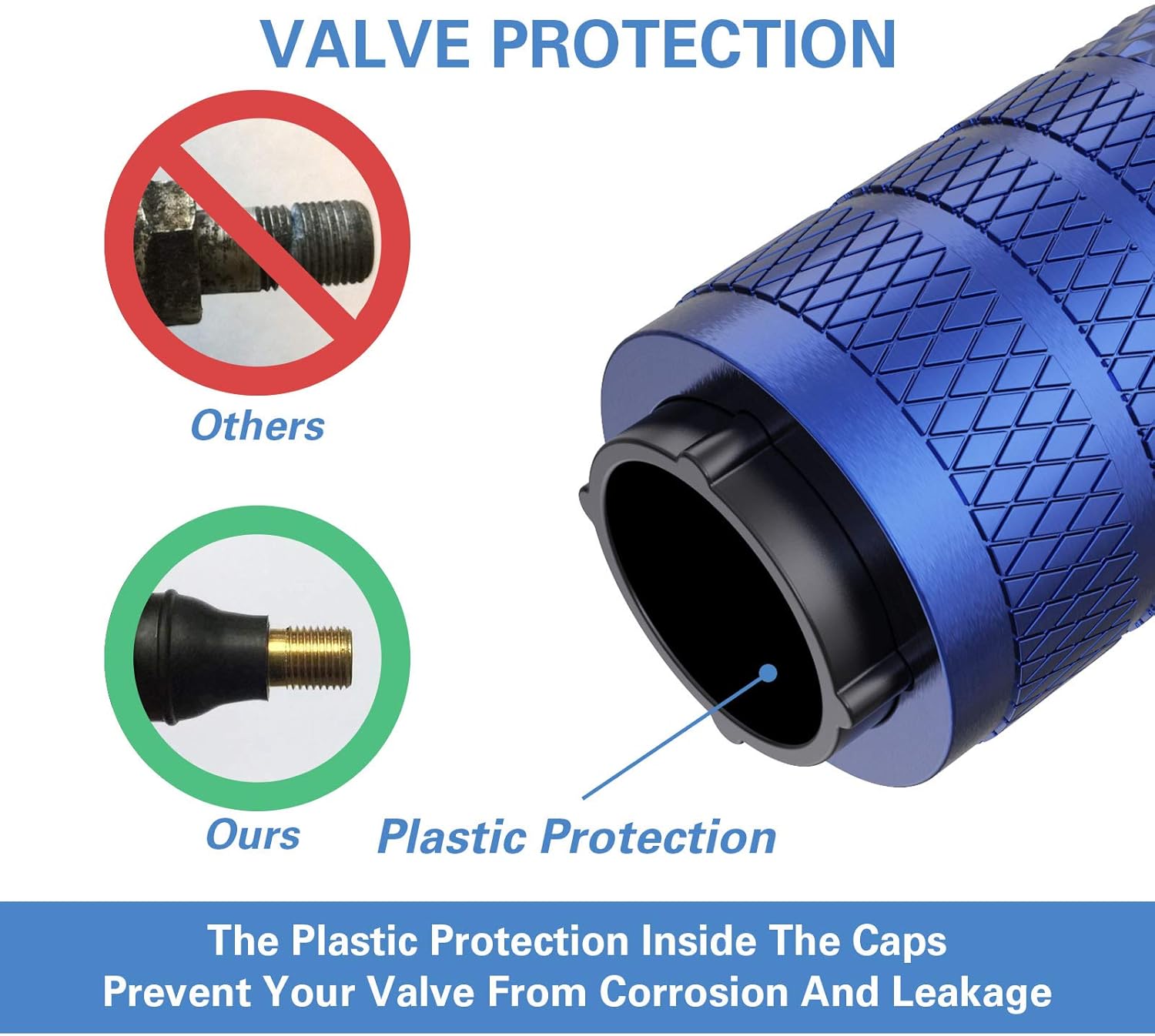 CKAuto Tire Valve Stem Caps, Blue, 4 pcs/Pack, Anodized Aluminum Tire Valve Cap Set, Corrosion Resistant, Universal Stem Covers for Cars Trucks Motorcycles SUVs and Bikes