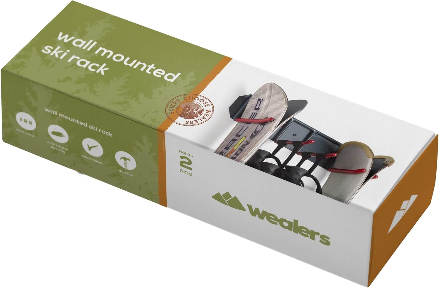 - INCLUDES: - 1 Ski Storage Rack Organizer Wall Mounted Storage Rack Organizer - Heavy Duty Horizontal Wall Ski Rack Storage with Metal Frame and Padded Hooks - Indoors | Outdoors Premium Wall Storage Ski Rack