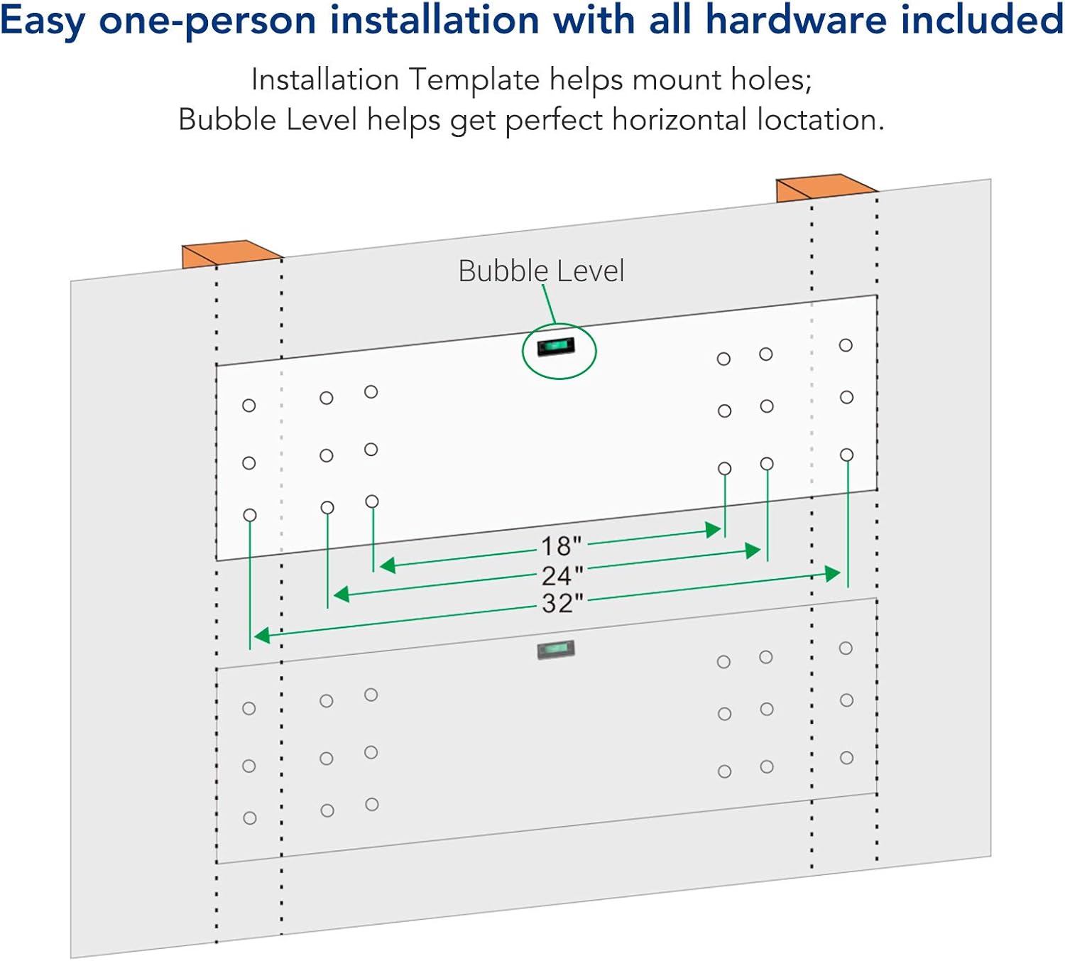 - Easy Installation: Easy one-person installation with all hardware included: Installation Template helps mount holes; Bubble Level helps get perfect horizontal location.