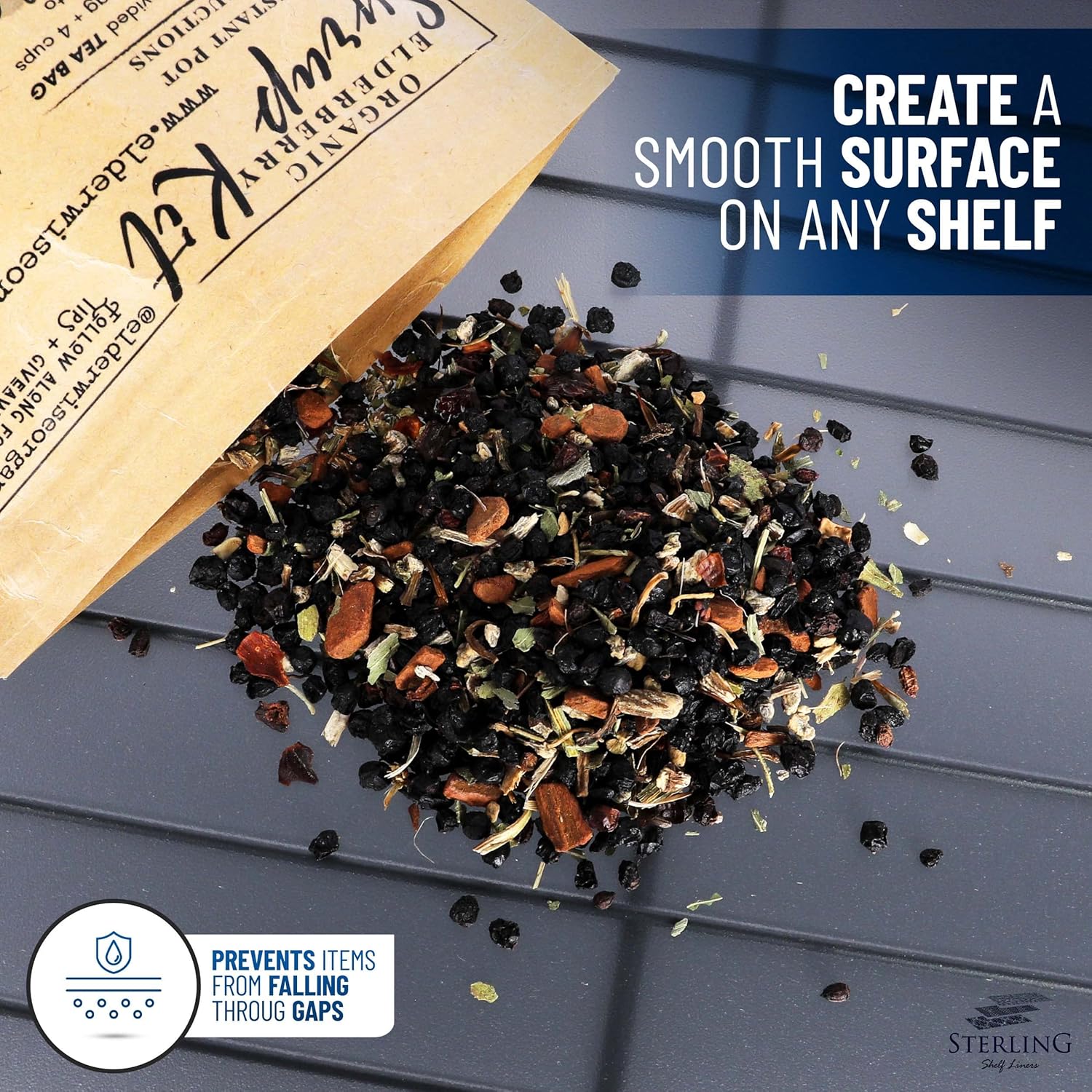 - Elegant Design: Our metal shelving liner for wire shelving system is offered in a variety of semi-translucent, frosted colors to match your interior decor. Match the color to your pantry, garage or utility cupboard.