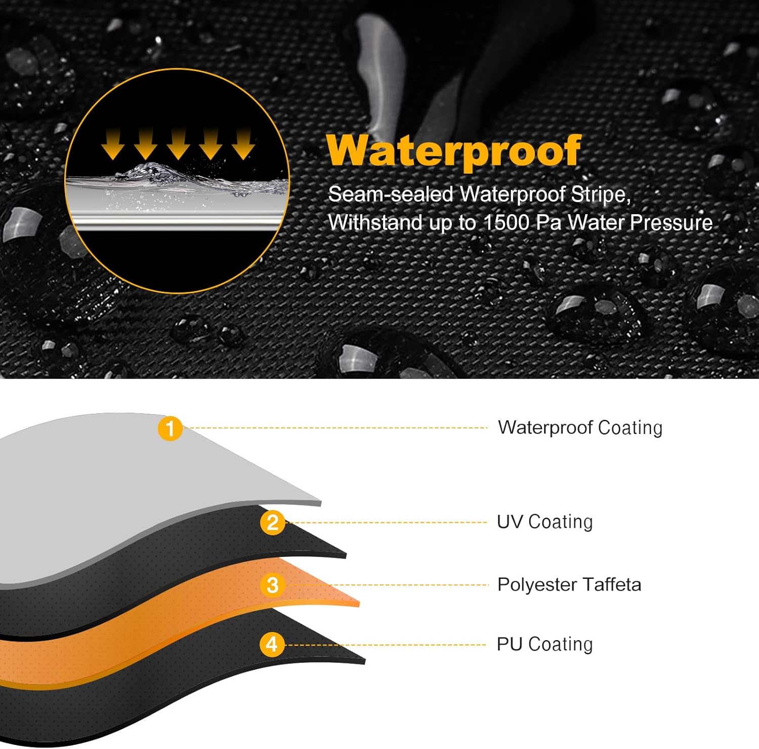 - ăDURABLE MATERIALăThis waterproof atv covers is made of premium polyester fabric, silver coating inside to ensure a better performance in all weather conditions; The four wheeler cover can protect your outdoor atv from sun, rain, snow and bird droppings