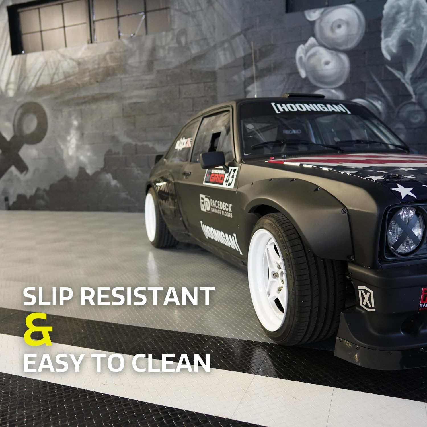 - SLIP RESISTANT AND EASY TO CLEAN: Unlike epoxy or other floor treatments, the diamond plate design provides great traction with little or no maintenance. The sturdy, durable surfaces wonβt stain and make clean-up a breeze. Car oil, dirt, dust, or other messes are no problem with a mop or shop vac.