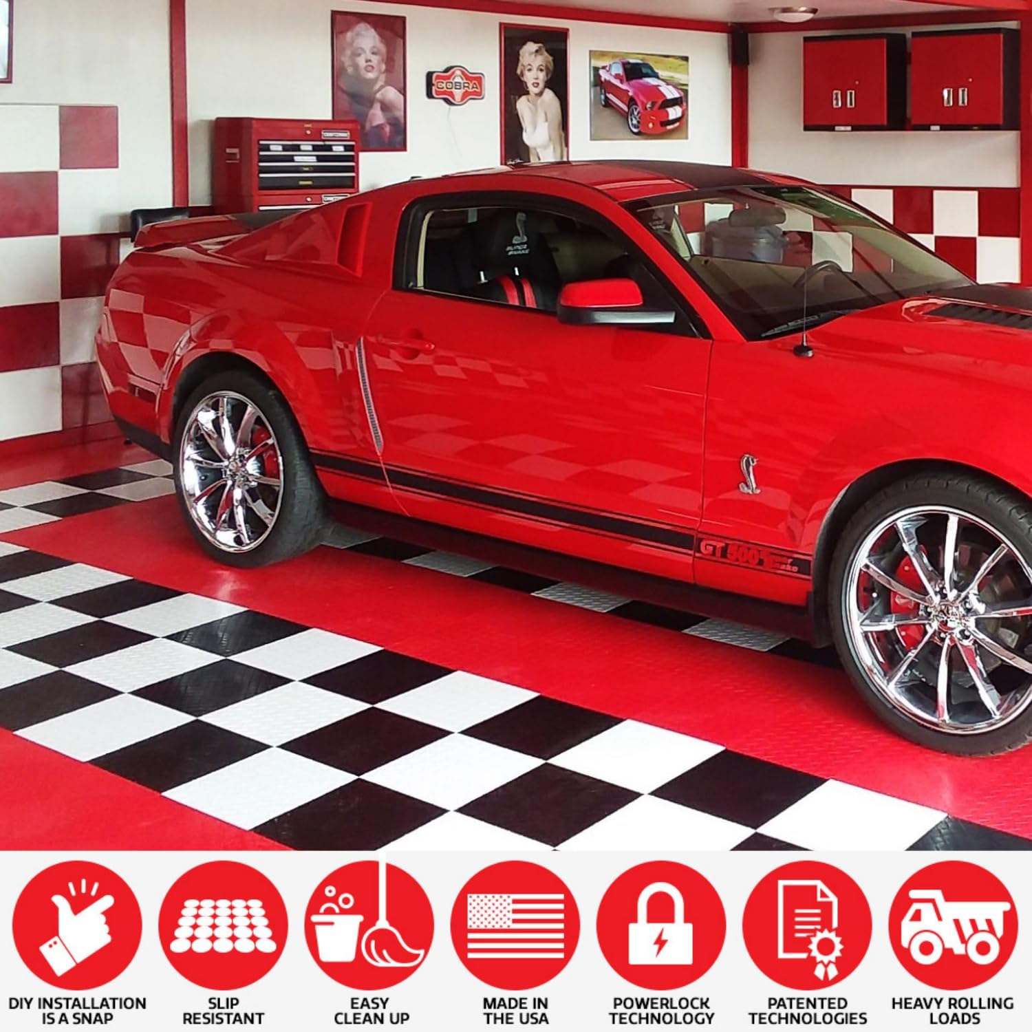 - SLIP RESISTANT AND EASY TO CLEAN: Unlike epoxy or other floor treatments, the surface pattern provides great traction with little or no maintenance. The sturdy, durable surfaces wonβt stain and make clean-up a breeze. Car oil, dirt, dust, or other messes are no problem with a mop or shop vac.