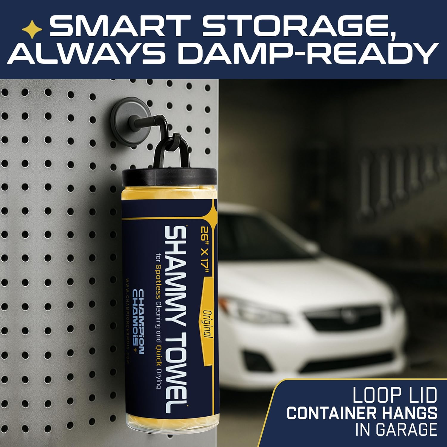 - REUSABLE - Our car wash shammy is built for years of use. It retains its absorbency wash after wash and is designed to withstand tough conditions. They're easy to maintain β just wash off dirt, wring out excess water, and store in the included container!