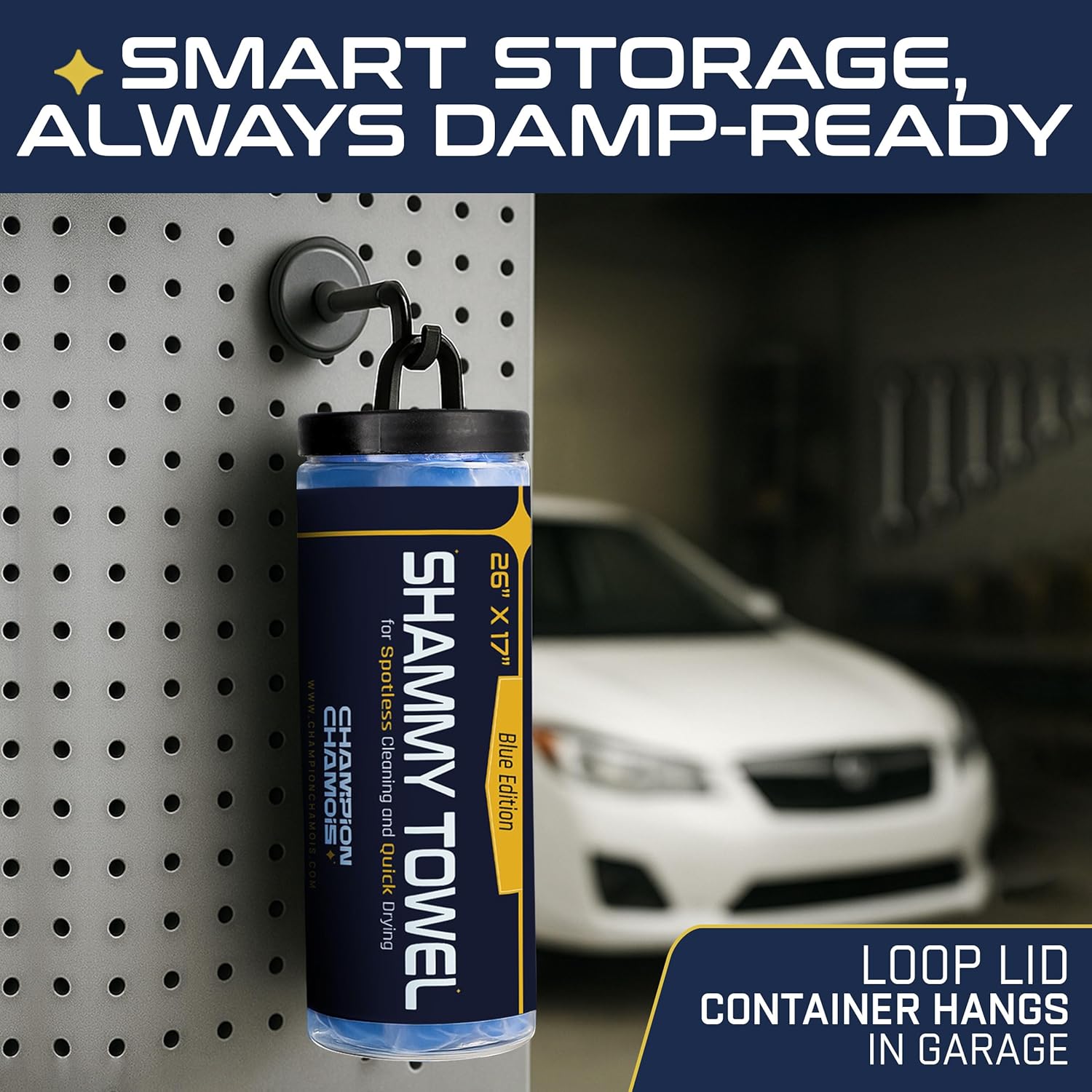 - REUSABLE - Our car wash shammy is built for years of use. It retains its absorbency wash after wash and is designed to withstand tough conditions. They're easy to maintain β just wash off dirt, wring out excess water, and store in the included container!