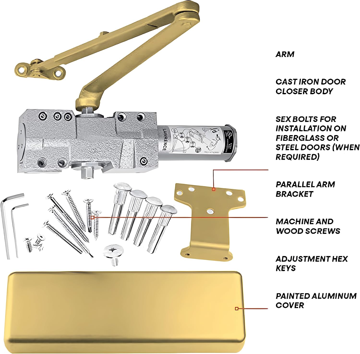 Lawrence Extra Heavy Duty Door Closer Commercial Grade 1 - Adjustable 6-Speed Delayed-Action Door Control with 3 Pistons – Flexible Installation with Included Hardware - Embassy Series LH8016