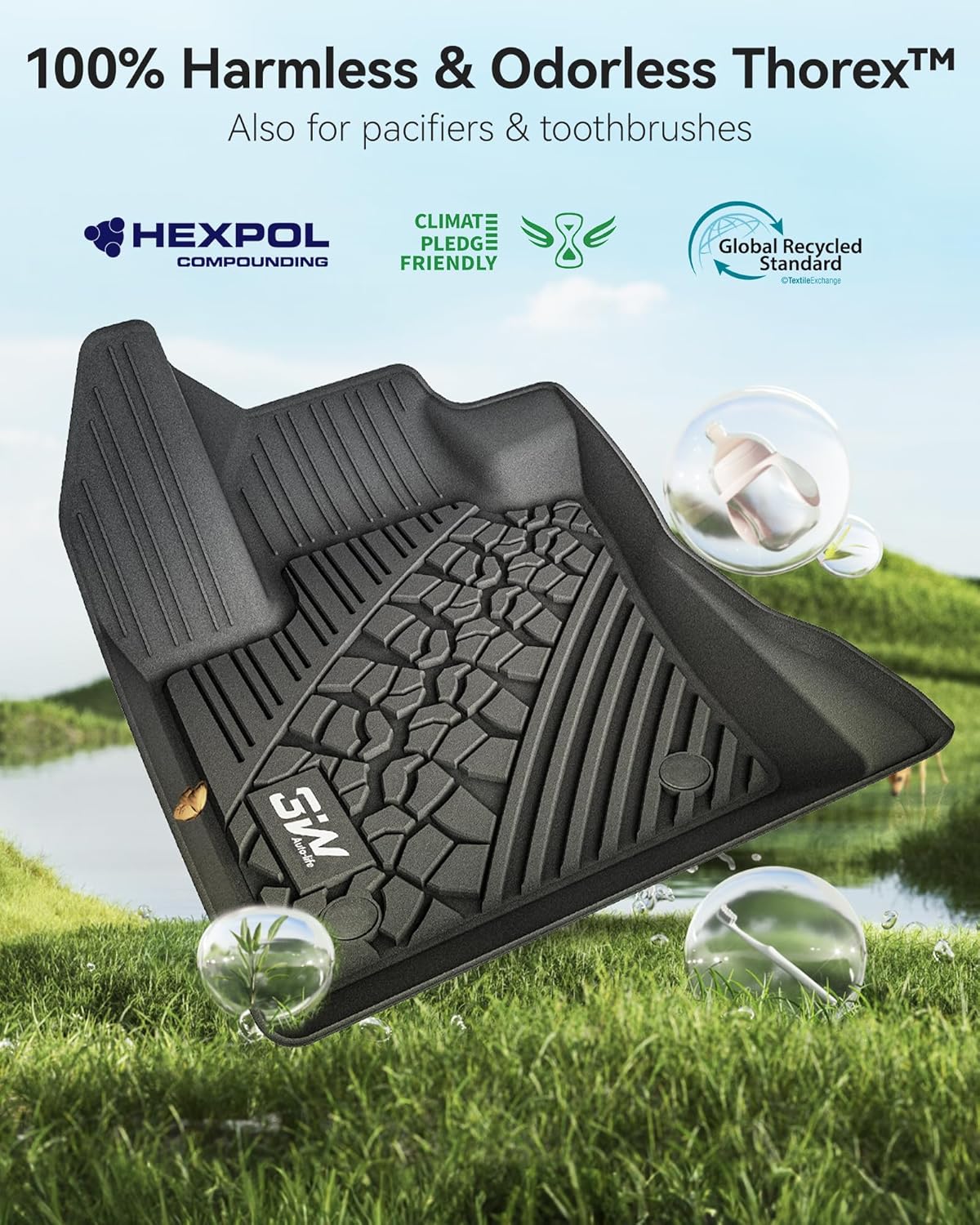 3W Floor Mats Fit for 2017-2025 Jeep Compass, TPE All Weather Custom Fit First and Second Rows Full Set Car Mats, Black