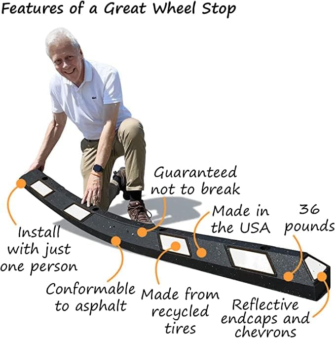 - DURABLE. Resistant to extreme temperature variations, UV light, oils, moisture, road salt and damage. Rubber Wheel Stops will not rust, chip, crack, crumble, corrode or need repainting.