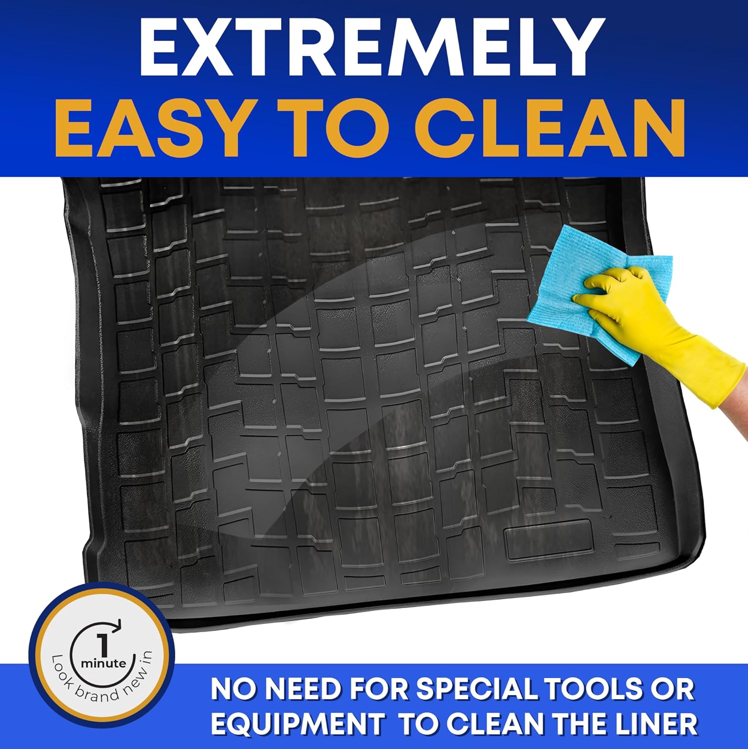- EASY-CLEAN DESIGN - Featuring an anti-skid, stain-resistant surface, our trunk liners are a breeze to maintain. The raised exterior lip traps spills, maintaining your trunk's cleanliness. Keep it looking fresh by simply rinsing with water and watch it restore its gleam!