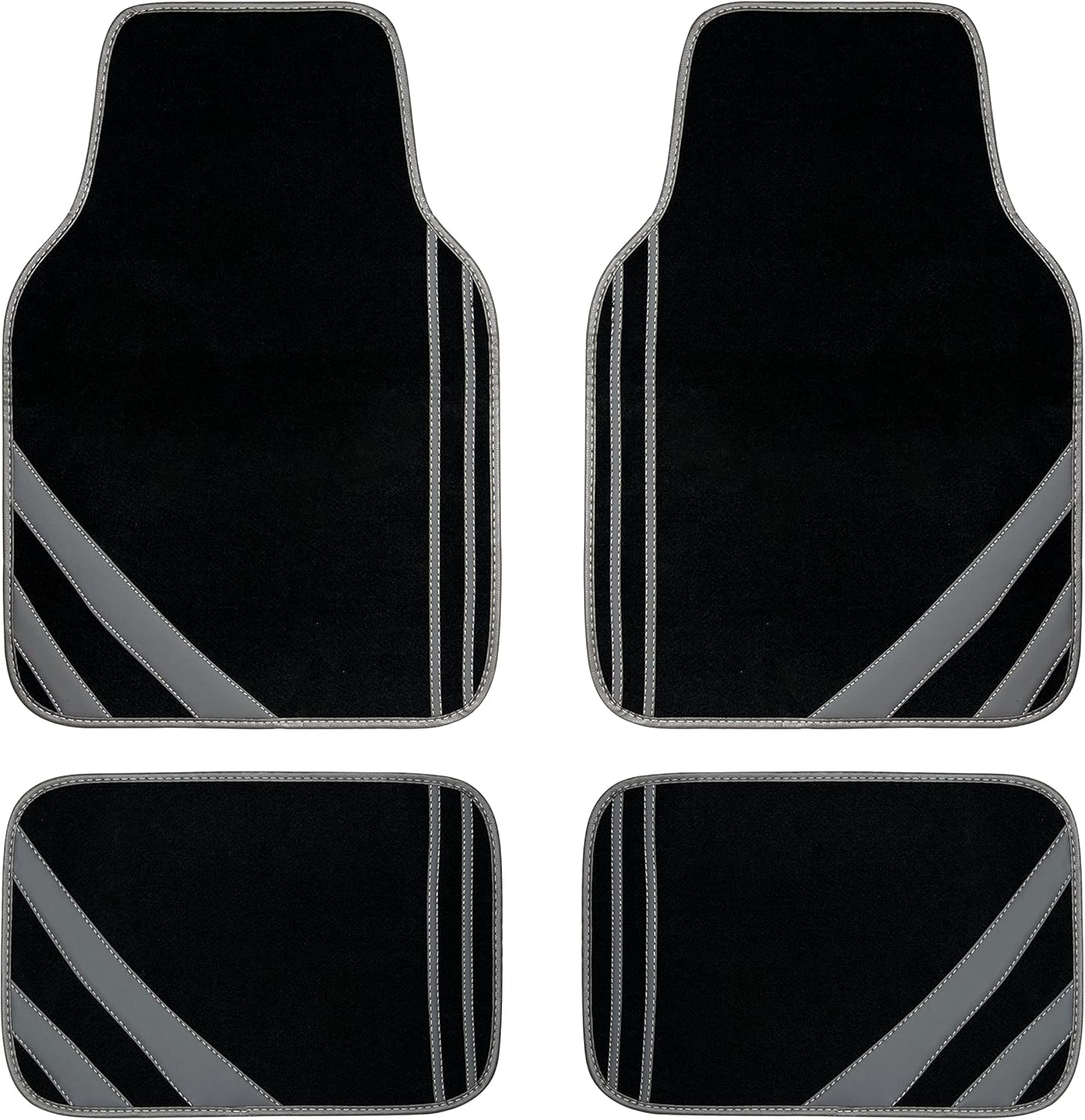 CAR PASS Carpet Car Floor Mats, Edge Leather Waterproof Car Mats with Double Stitch Line and Anti-Slip Backing Design, Fit 95% Automotive,SUVS,Sedan,Vans (Black and Gray)