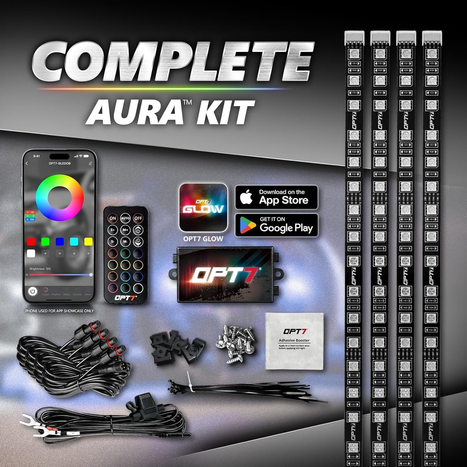 OPT7 Aura Pro RGB LED Grille Lights with App & Remote Control, 4pc 24" Light Strips, Waterproof Front Grill Lighting, Music Sync, Multi-Color, Trucks Decor Accessories for Tacoma Tundra 4Runner