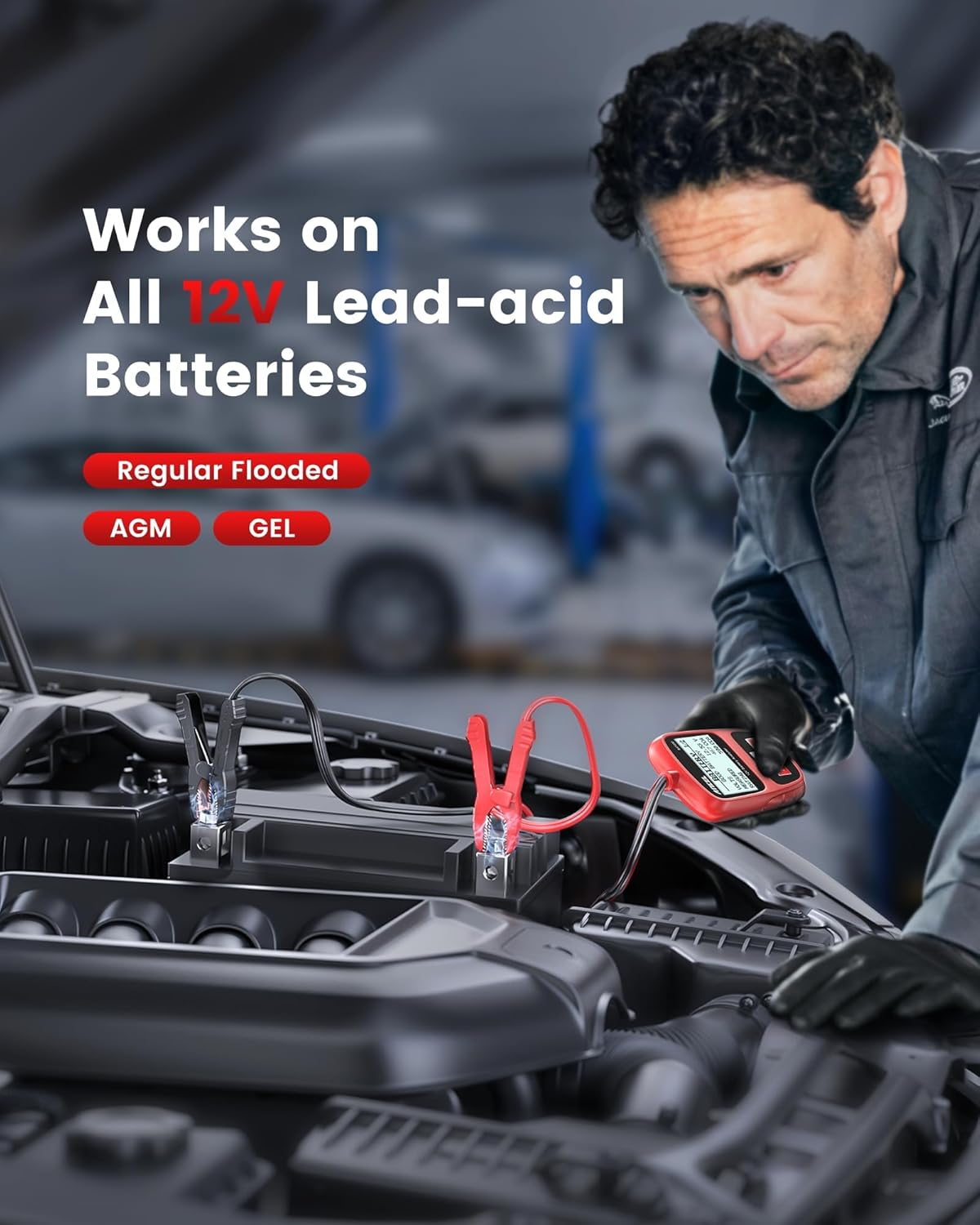- šćWIDER TESTING RANGEćCar battery tester works on 12V lead-acid batteries, Battery tester 12V automotive including regular flooded, AGM flat plate, AGM spiral, and GEL batteries for cars, RV, SUV, motorcycle, boats, light truck, and even golf carts. Battery testers give you an accurate result in merely seconds, such as CCA value, CCA rating, voltage, internal resistance, state of health, and state of charge, based on the rating standard of CCA, CA, MCA, JIS, DIN, IEC, EN and SAE