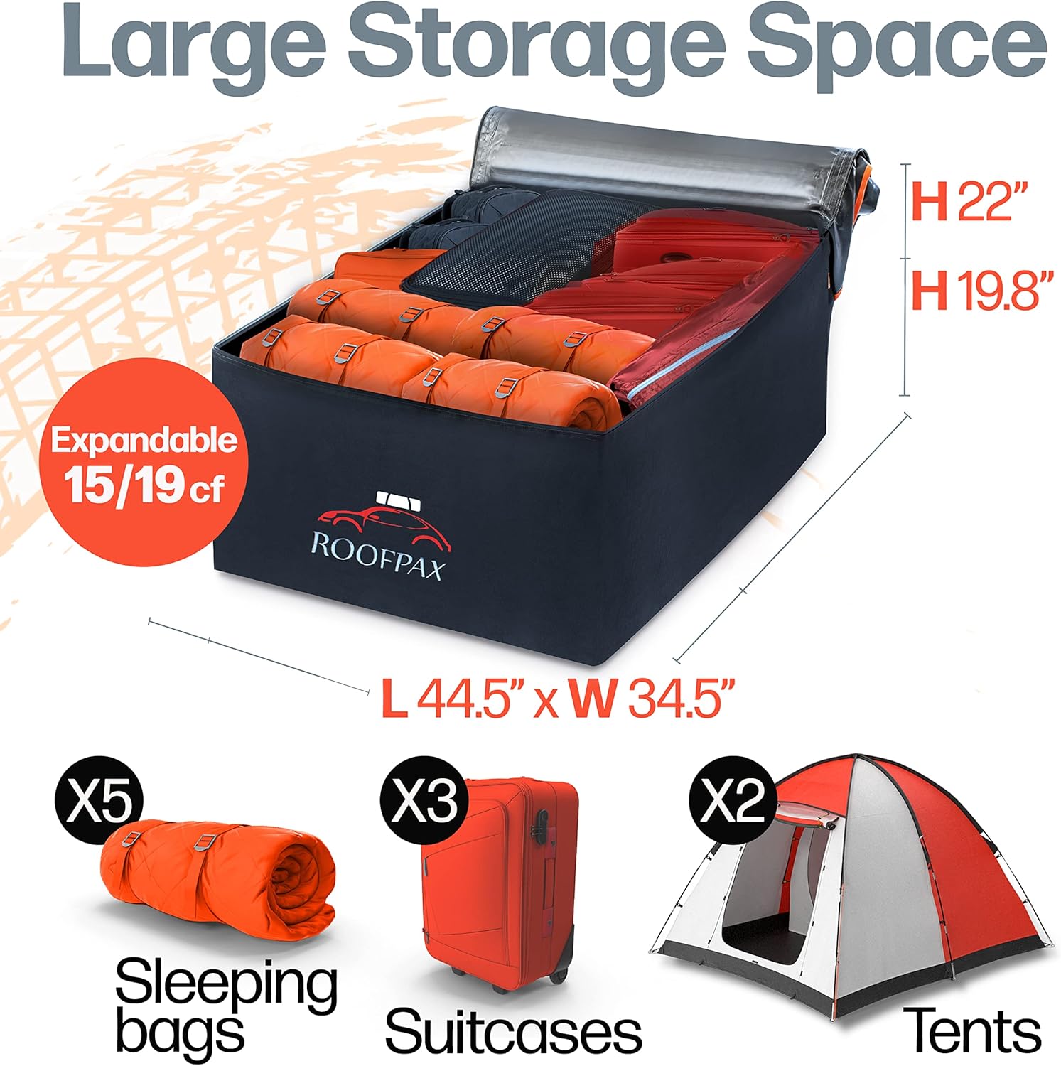RoofPax Expandable 15/19 cft. Car Rooftop Cargo Carrier Bag Waterproof Storage Including Double Zippers, Heavy-Duty Tie-Down Straps fit Cars with/Without Roof Top Rack or Side Rails