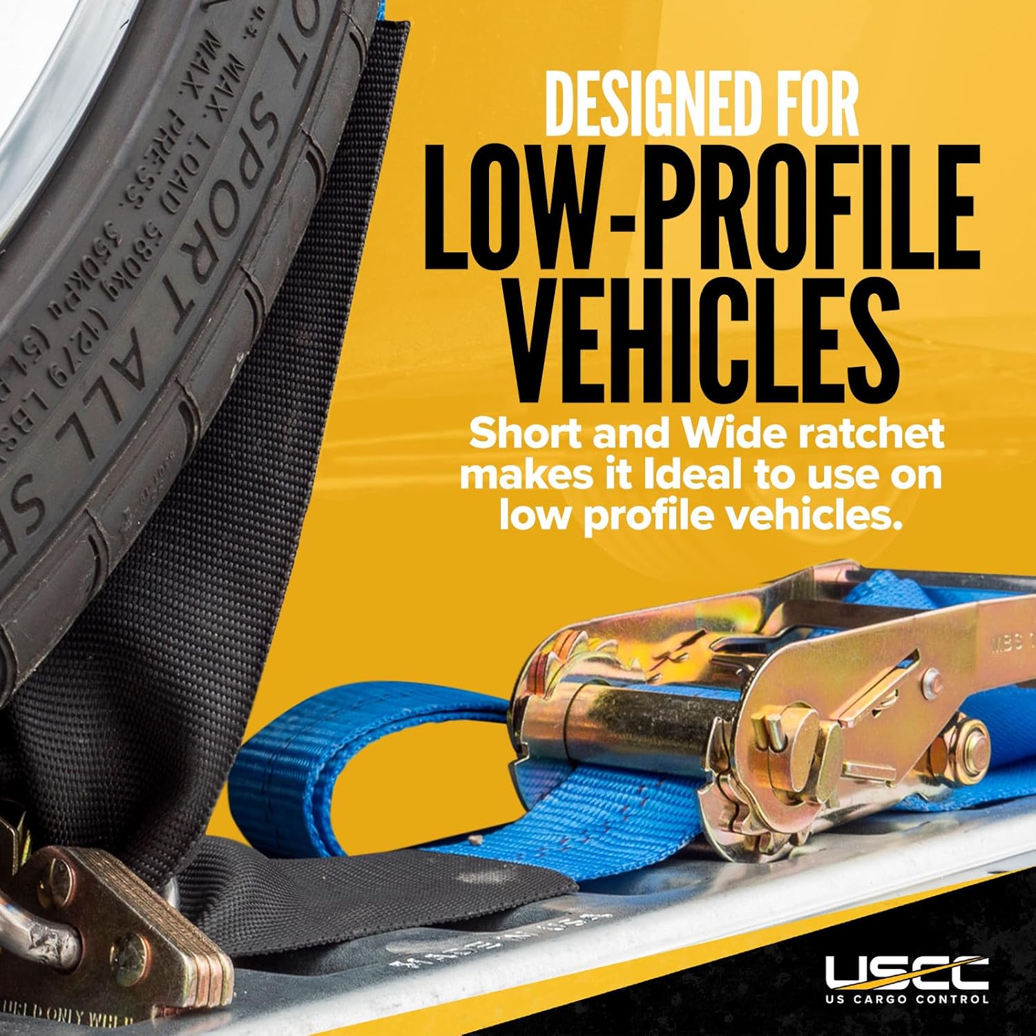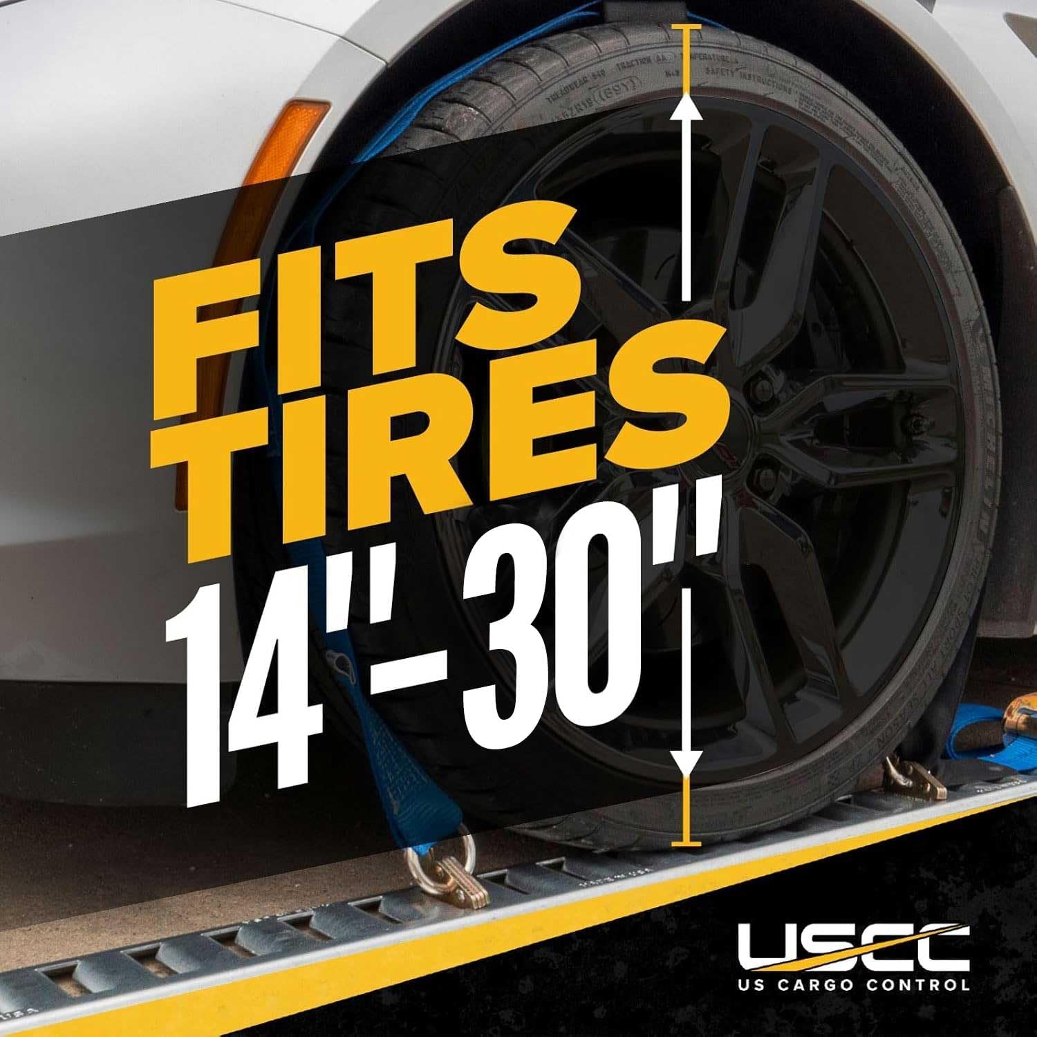 US Cargo Control E Track Wheel Straps with E-Track Fittings & Three Rubber Blocks (4-Pack), 2 Inch x 11 Foot Car Tie Down Straps for Trailers, Fits Tires 14-30 Inches, 12,000 LBS Break Strength