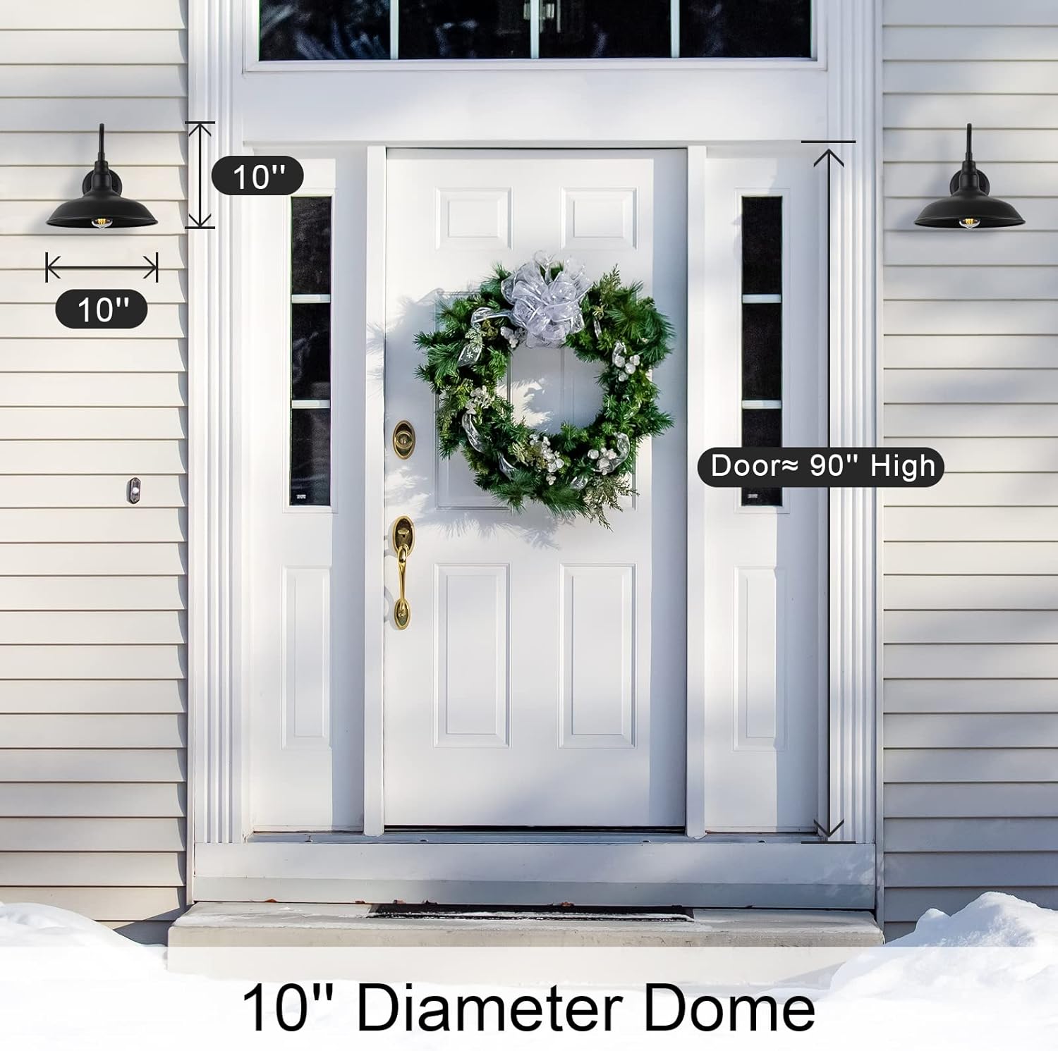 - Industrial Wall Light Fixture Makes Your House Look Unique Stylish: Featured with its classic gooseneck arm, simple 10 inch dome design, finished by a matte black powder coating finish, this barn style light brings a pleasing and modern simplistic elements to both exterior and interior place. The open bulb area of this sconce also spreads the light farther, meets the illumination needs for your farmhouse, cabin, garage, doorway, garden, porch, yard