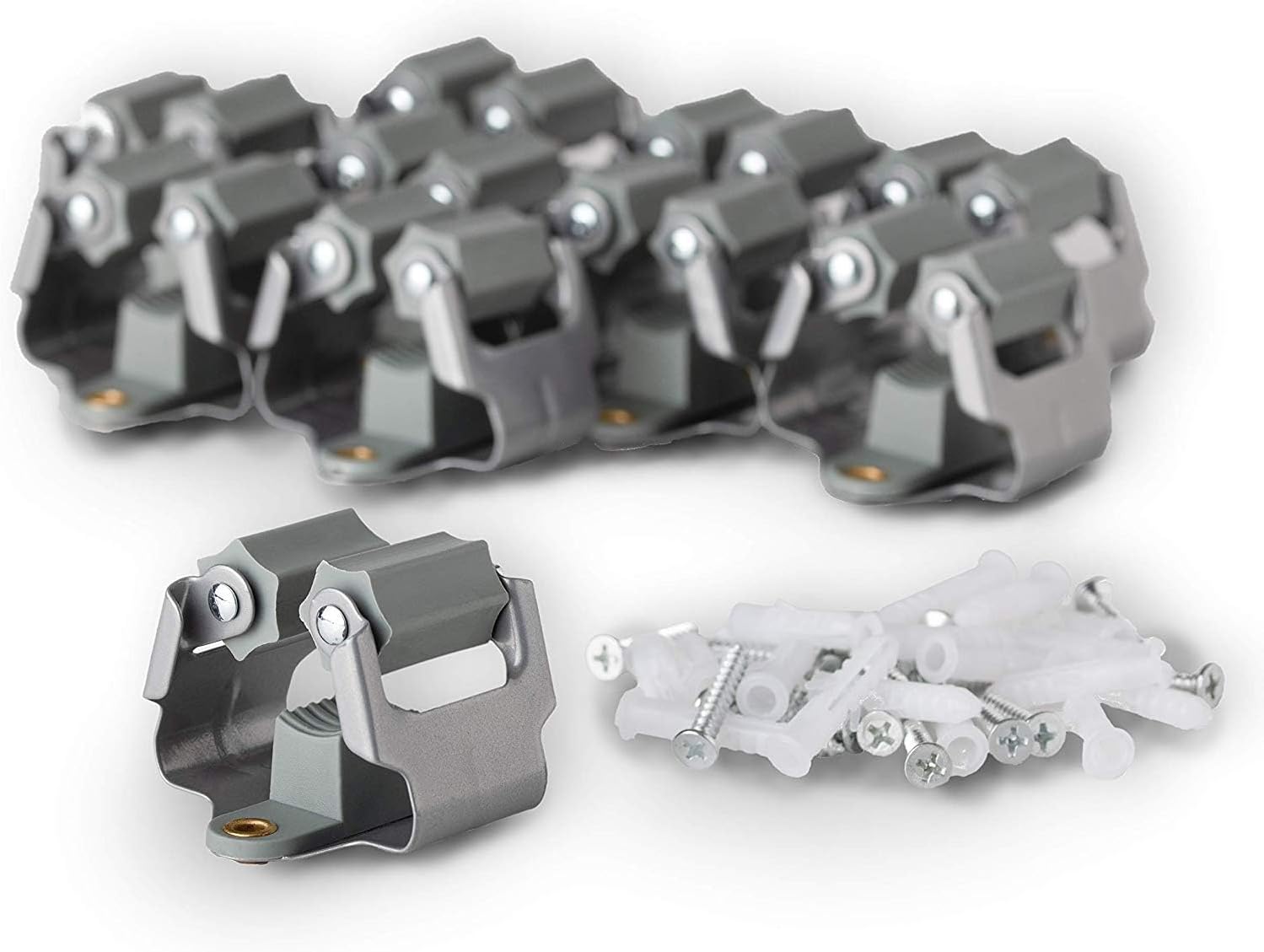 - PREMIUM QUALITY - The metal anti-rust Manganese Spring steel and the grip of the abrasion-resistant rubber keeps broom and dustpan,garden tools,yard tools,rake,shovels very well, with the anchor and screws supplied together, mop and broom holder wall mount can grip the mop handles for a long time without worrying the broom will fall off