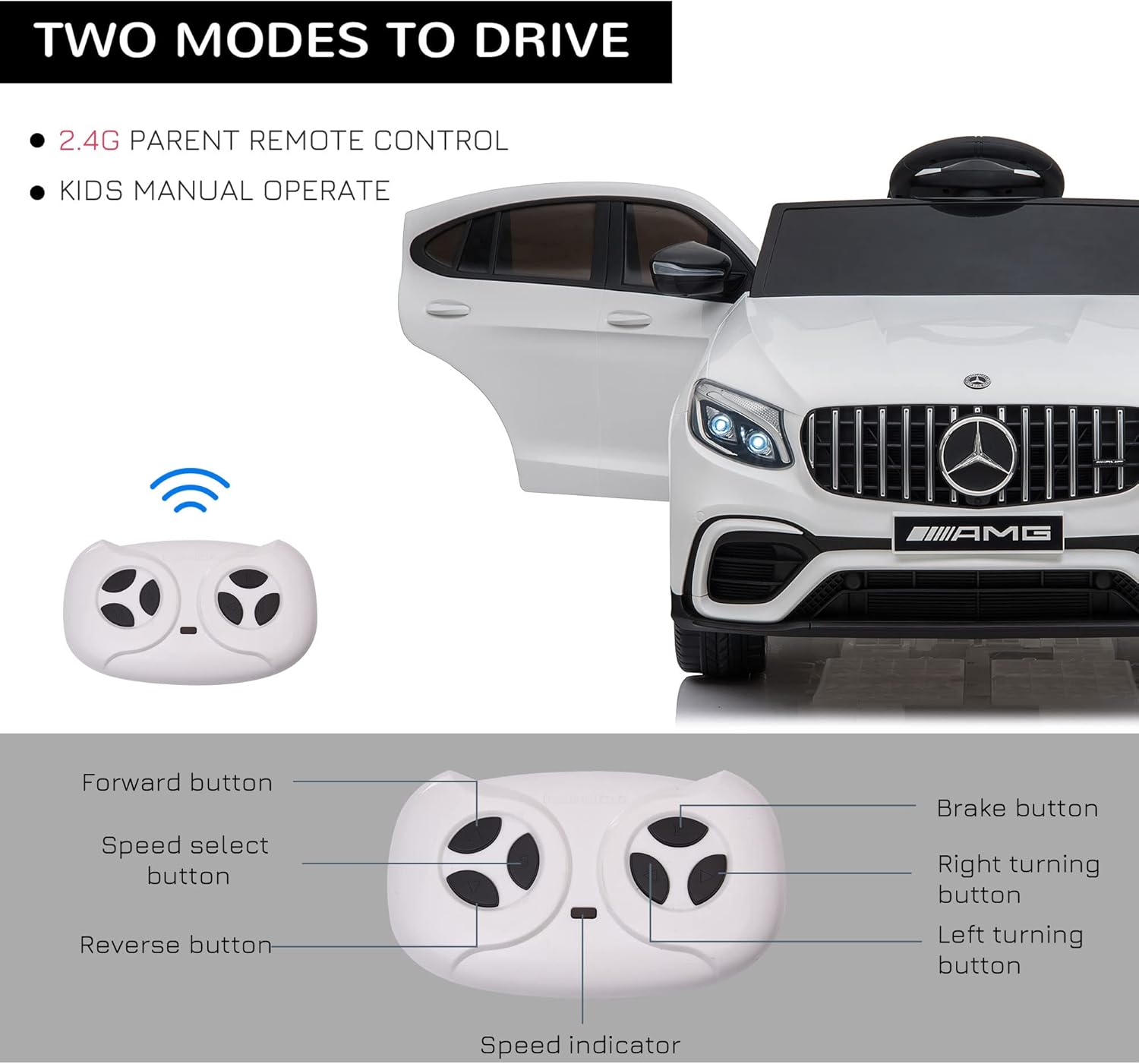 Aosom 12V Toddler Ride On Car with Remote Control, Mercedes Benz AMG GLC63S Coupe, Electric Car with 2 Speed, MP3 Player, Light, Horn, Songs, Suspension, White
