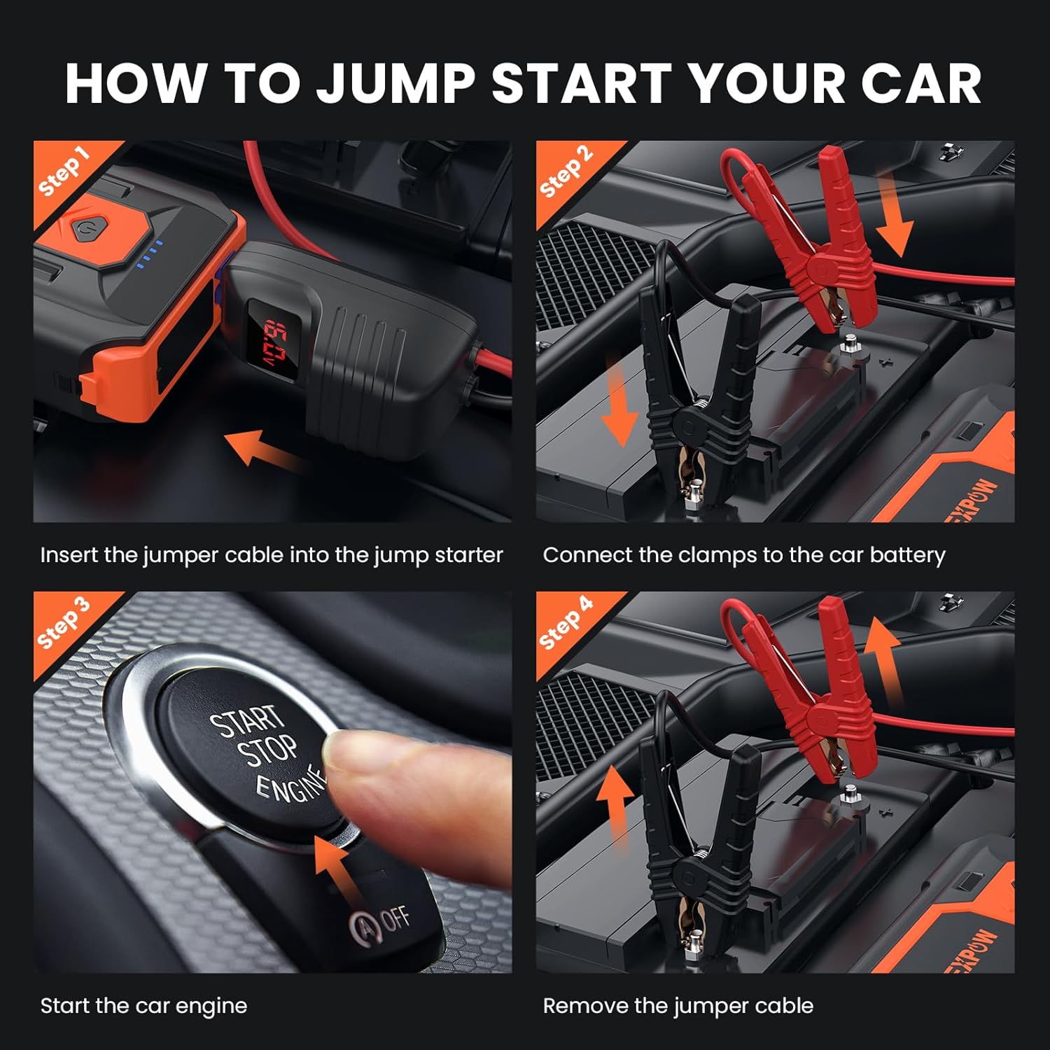 • What's Included: NEXPOW Q9B car battery starter, smart-jumper cables, USB Type-C cable, cigarette lighter socket adapter, user manual, carrying case