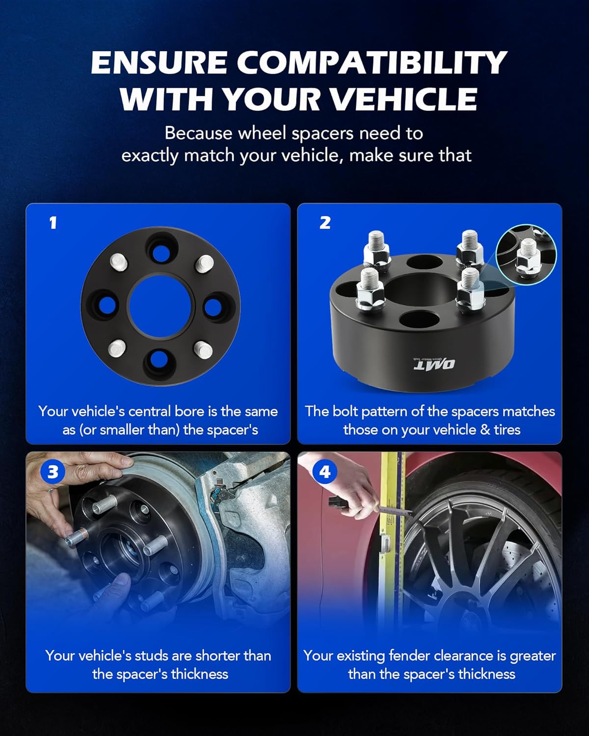 - SPECIALLY DESIGNED: This wheel spacer kit is specially designed for use with golf carts, go carts, and ATVs that match 4x4" wheel spacers; that have studs 2 inches or shorter; and that have a center bore should be 2.3 inches wide or smaller