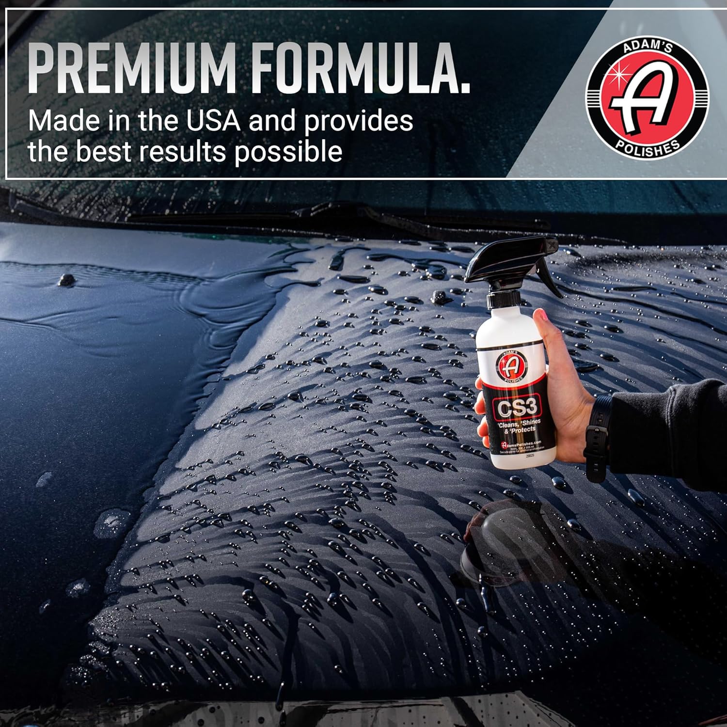 • ✅ CERAMIC INFUSED 3 IN 1 ADVANCED FORMULA! Adam’s CS3 provides a waterless wash & car wax spray, coat and shine polish, water-based ceramic coating hydrophobic spray, all in one convenient, innovative product.