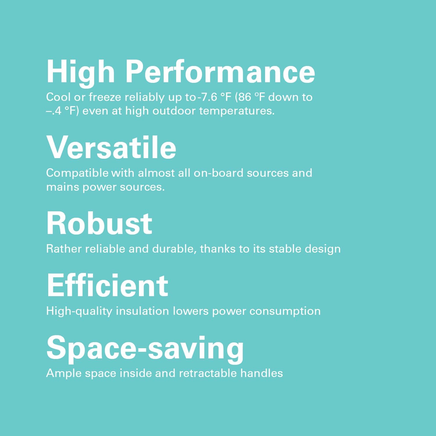 - POWERFUL COOLING PERFORMANCE – Our long-lasting Truma compressor coolers reliably cool or freeze down to -8ºF(-22°C), even at high outside temperatures. Easy operation: accurate temperature control and adjustment on intuitive digital display or via app.