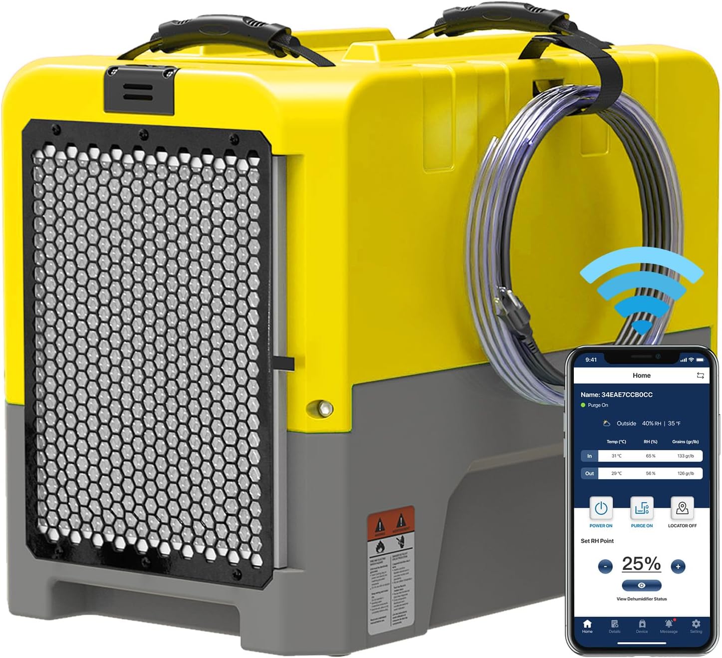 - COMMERCIAL, INDUSTRIAL, and PERSONAL USE: Ideal for Carpet Cleaning, Basements/Cellars, Laundries, De-Flooding, Offices, Laboratories, Tradesmen, Garages. Design with humanized: Onboard storage for 19.6 ft power cord and 19.6 ft condensate hose. Convenient storage for the power cord and drain hose. MERV-8. APP Control, Automatic Digital Humidistat Control, Memory Starting, Timer, Automatic Digital Humidistat Control. Industrial Dehumidifier with Condensate Pump.