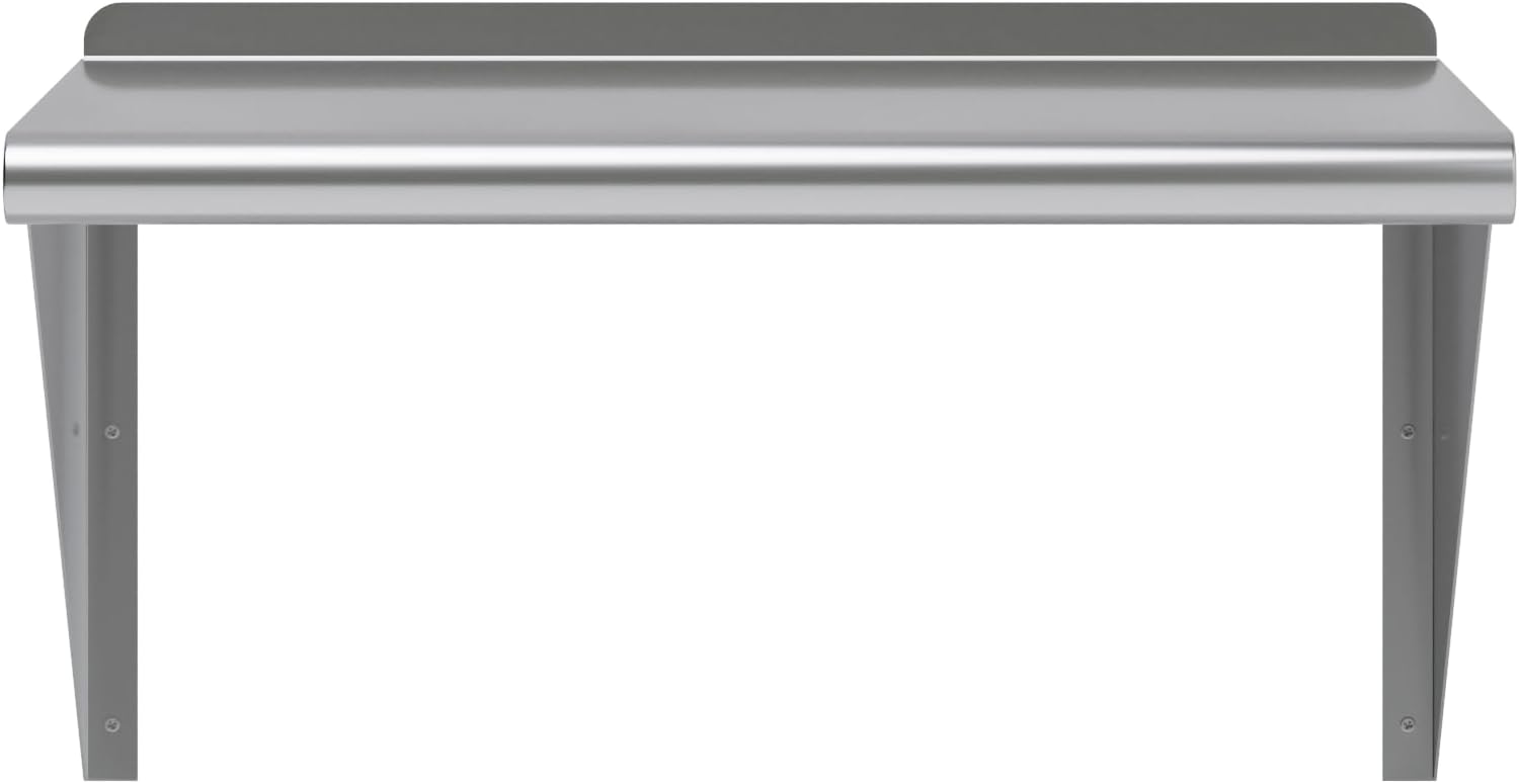 - This heavy-duty multifunctional stainless wall shelf is made with 18 gauge stainless steel and can hold up to 260 lbs of weight. The design features a 1" backsplash and bullnose edge. It's made with durable welded corners and support brackets.
