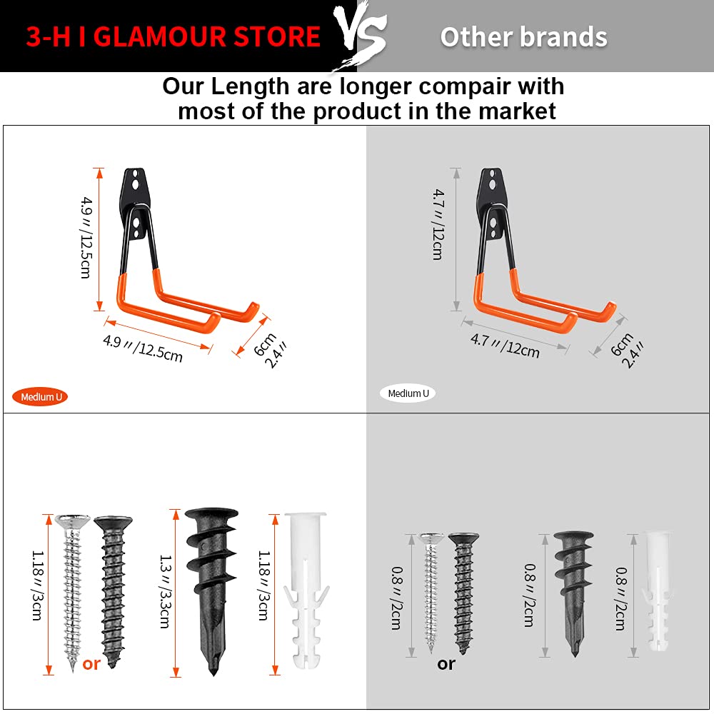 - ★--GREAT GIFT & BEST AFTER-SALE SERVICE:An awesome gift or housewarming for someone! All 3-H garage organizer hooks come with one year guarantee. If any garage hangers are found to be defective or any other problems arise during use, please feel free to contact us. Our customer service executive will be there at your service willing to resolve your issue, whatever it may be.