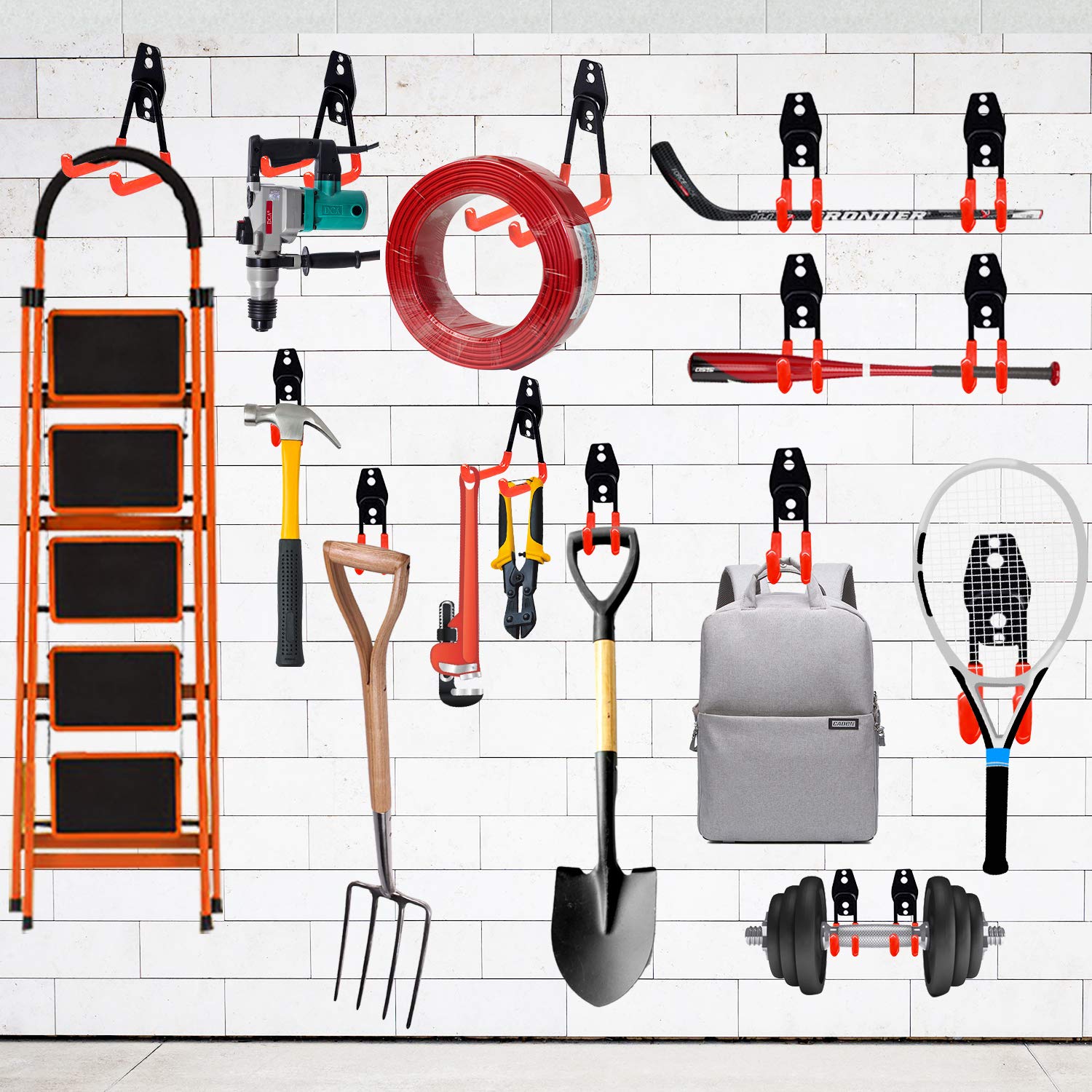 - ★--PERFECT FOR HEAVY OBJECTS –Garage Utility hooks is a set of 10 wall mounted double hooks,10 Big J hook . The extended length and anti-slip coating let you organise and hang heavy objects for up to 80lbs.