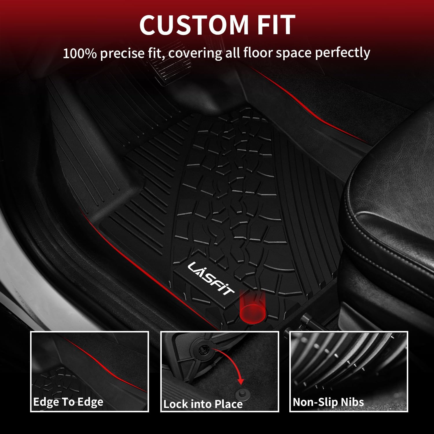 LASFIT Floor Mats for Jeep Compass 2017-2025 All Weather TPE Custom Fit Car Mats Floor Liners 1st & 2nd Row, Black