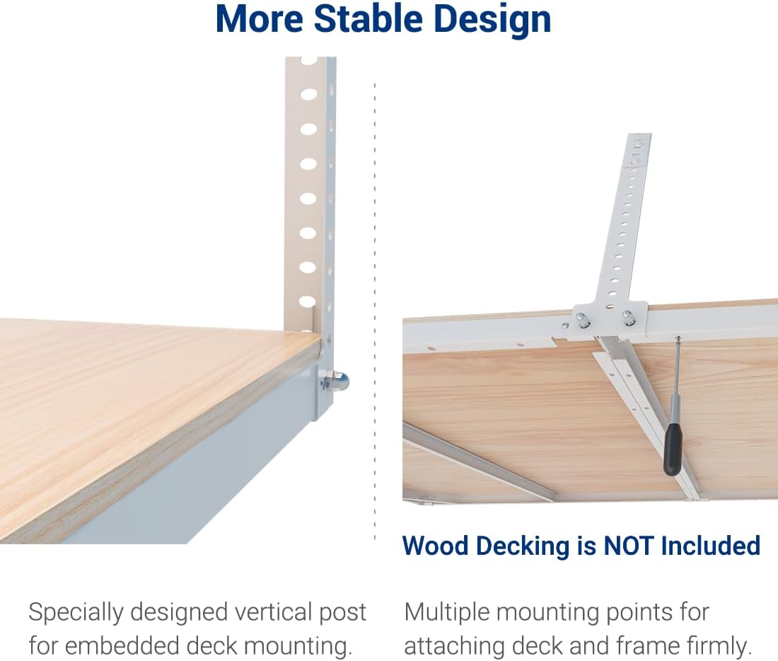 - STABLE: Multiple dedicated embedded mounting points in the frame allow you to securely and firmly fasten your decking down with tapping screws. And FLEXIMOUNTS provides enough screws for mounting decks.