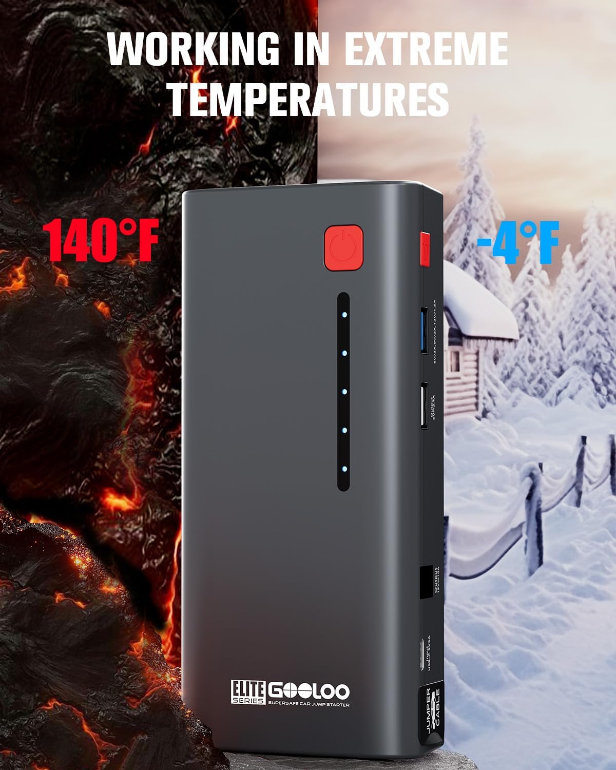 - SAFE AND EASY TO USE: The smart jumper cable features 10 kinds of advanced safety technologies,including over-current protection, overload protection, over-voltage protection, over-charge protection and high-temperature protection to ensure safety for the user. Besides, the jump starter battery pack has good quality to work well in extreme temperature (-4°F to 140°F).