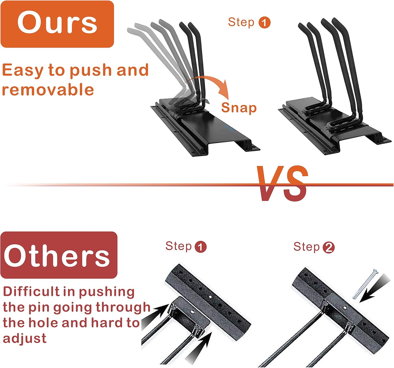 - 3 Pcs Heavy Duty Powder-Coated Steel Rails Boards: Different from others garage wall organizer, ours comes with 3 pcs rails boards. They are W / Epoxy Finish that wonโt scratch, rust or chip over time. Each slide rail can put 2-3 hooks and will not appear too crowded.