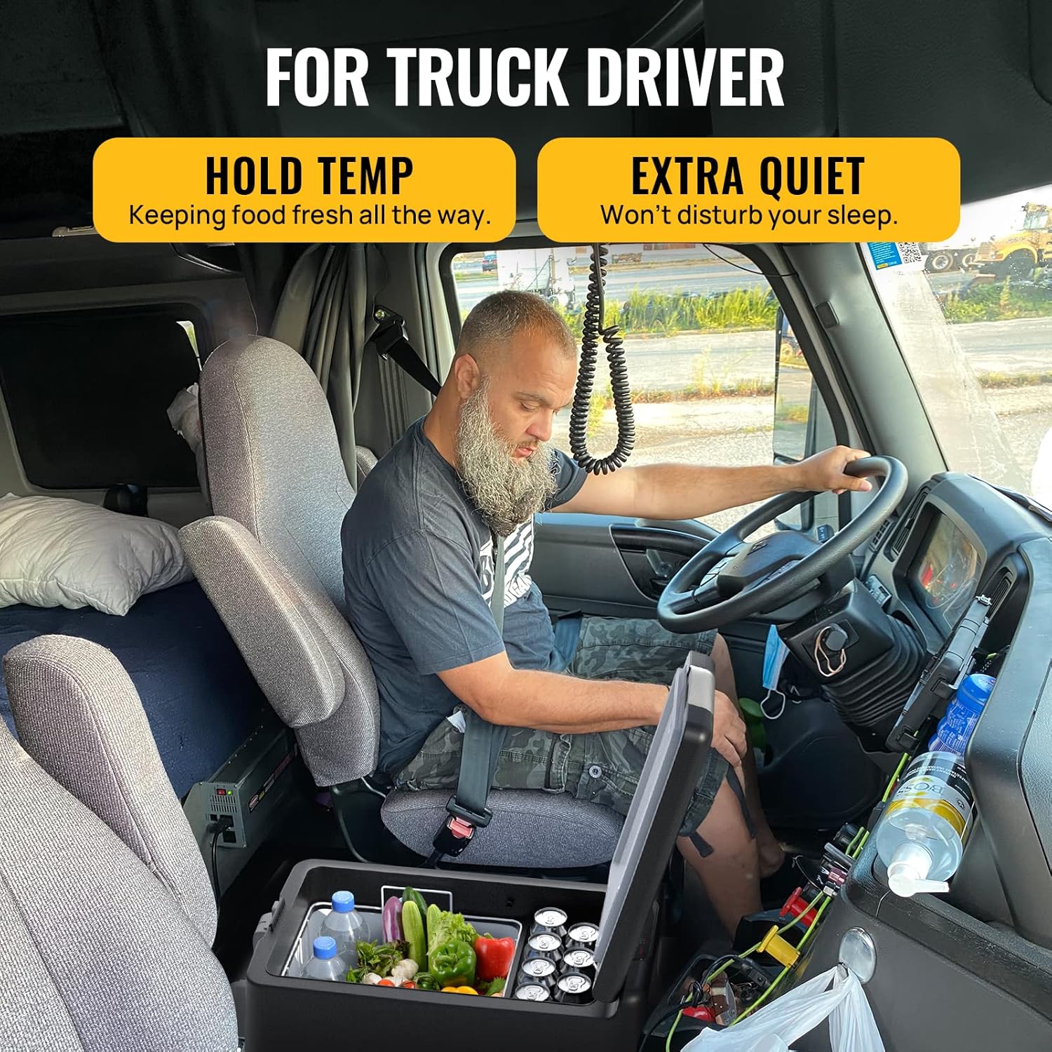 - 53 Qt car refrigerator: With Compressor refrigeration technology, this 12v car freezer could achieve 15 minutes of fast cooling from 77β to 32β and 60 min from 77β to -4β, keeping your food fresh. No ice needed, no food spoiled, money and space-saving