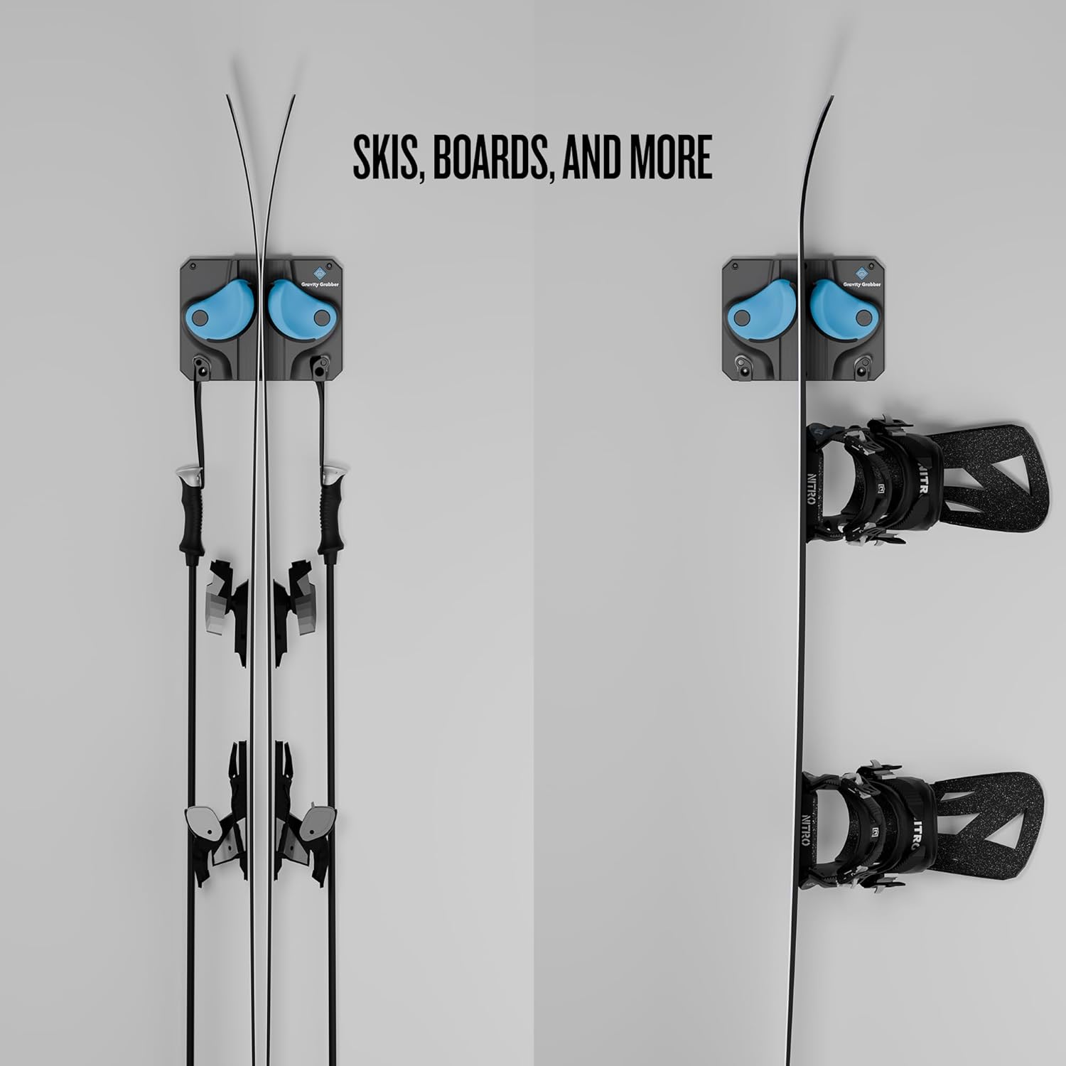 - SECURE YOUR GEAR - With anti-slip pads, keep what's hanging - hanging. Gravity Grabber's gravity-locking design and anti-slip rubber pads give you confidence that your equipment will stay in place. Hang any ski or snowboard, no matter the size, shape, or binding type. From powder to groomer skis, cross country skis, powder to park boards, whatever is hanging - stays hanging.