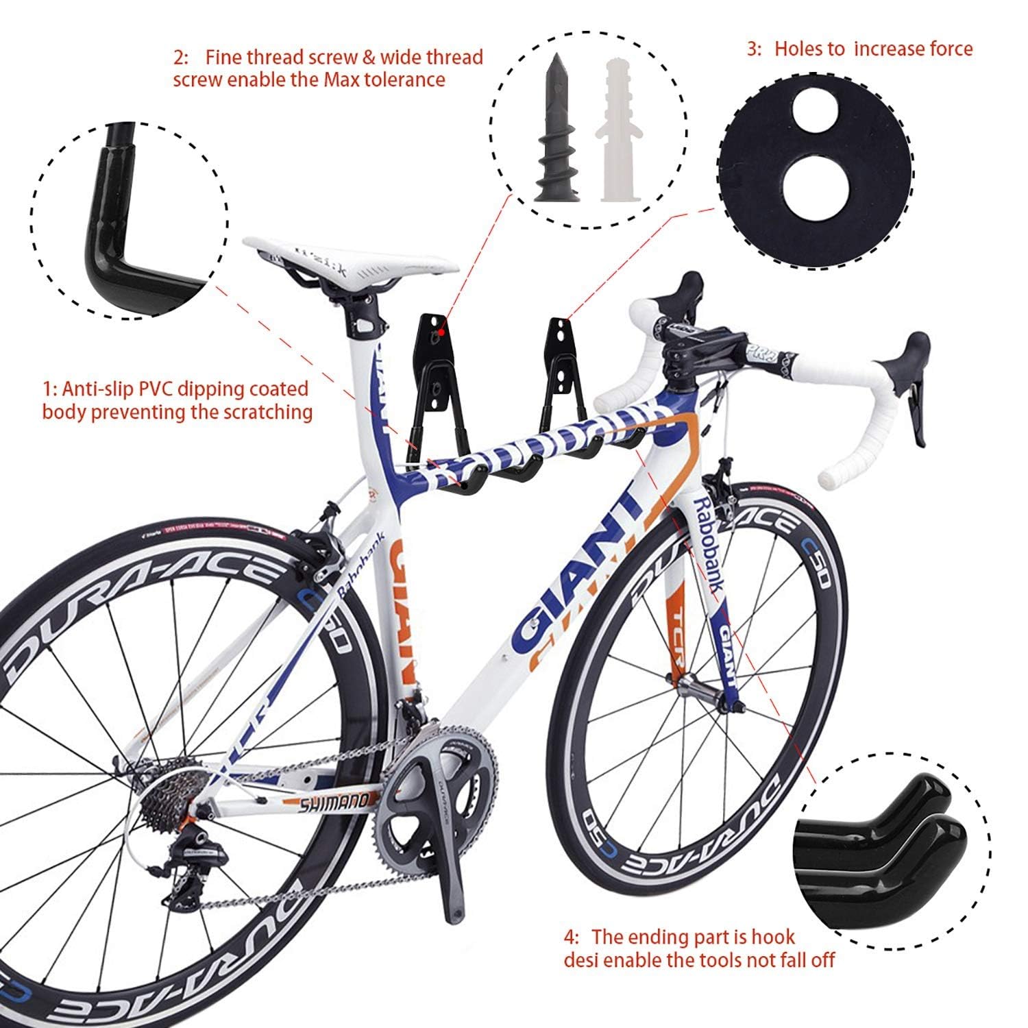 - Easy To Install: These garage hanging hooks are suitable for various walls. You can install them effortlessly. For plaster walls: (1) Insert black expansion screws into the two large holes of the heavy duty garage hooks; (2) Low speed drilling or manual tightening of steel screws. For wooden/brick/concrete walls: (1) Mark the two small holes for the garage hangers on the wall; (2) Drill holes and insert white expansion pipes; (3) Drill in steel screws