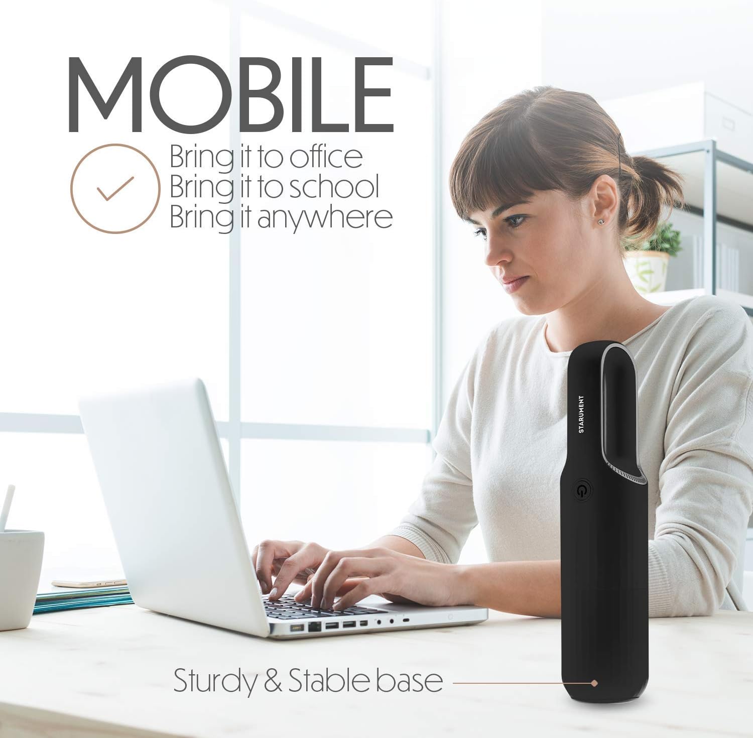 - β ERGONOMIC CONSTRUCTION - The compact body of this mini vacuum makes it very comfortable to carry around wherever you need it. Its lightweight form enables you to clean longer without tiring your arms.