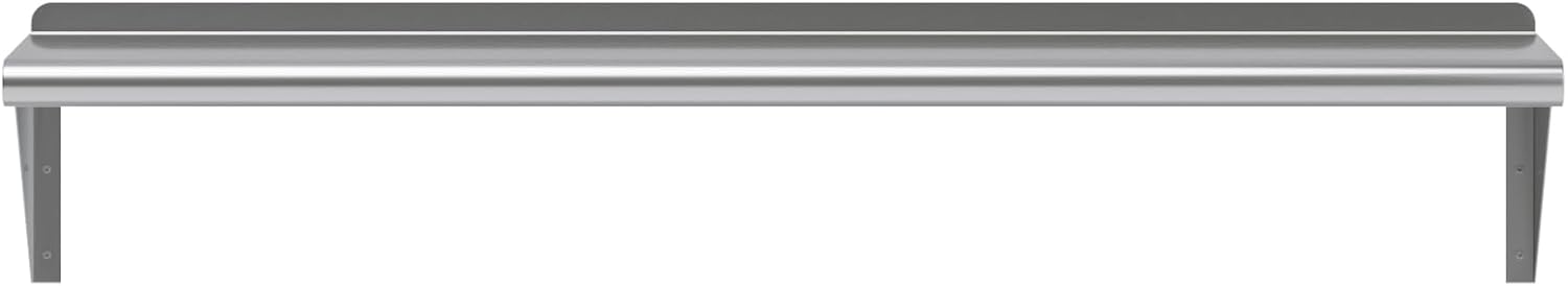 - 10 in. x 48 in. Stainless Steel Wall Shelf with 8 in. High Mounting Brackets. This heavy-duty multifunctional stainless wall shelf is made with 18 gauge stainless steel and can hold up to 205 Lbs of weight. The design features a 1 in. backsplash and bullnose edge. It's made with durable welded corners and support brackets.